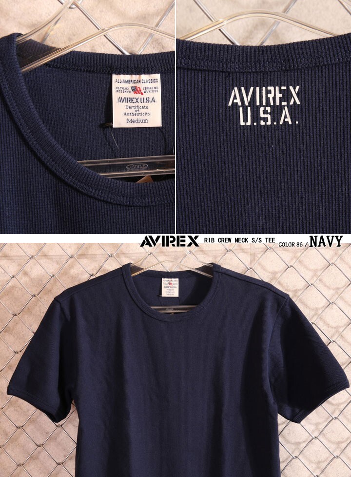 AVIREX アビレックス 半袖 Tシャツ クルーネック 無地 デイリーウエア 6143502