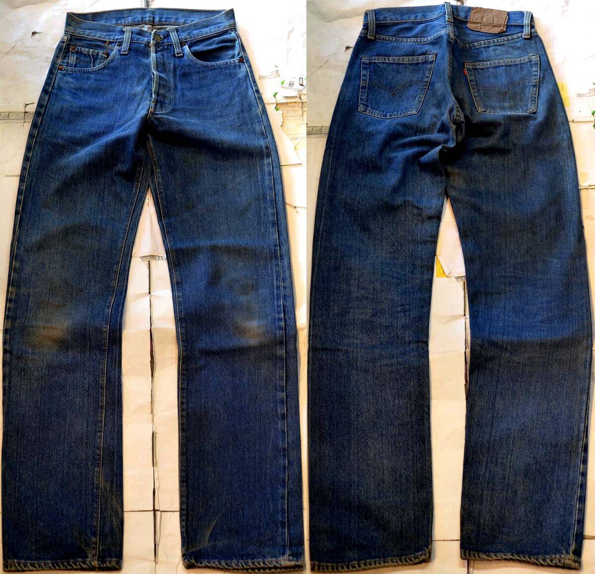 501の66後期です。復刻、レプリカではありません。『ディテール紹介』 バックポケット裏チェーンステッチ、フロントトップボタン裏の刻印6、裾オリジナルチェーンステッチ。 『状態』多少のUSED感はありますが、ノーダメージ、ノーリペアの極上品です。 生地もしっかりしています。『色落ち、特徴など』極上物の501 66後期です。生地はまだカチッとした状態で、特筆するダメージも一切ない極上物です。ガンガン穿きたい方にも自信を持ってお勧めします。色落ちは抜群にかっこよく、全体にきょうれつな縦落ちが走り、生地も粗い印象です。