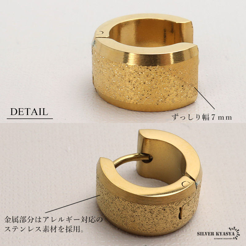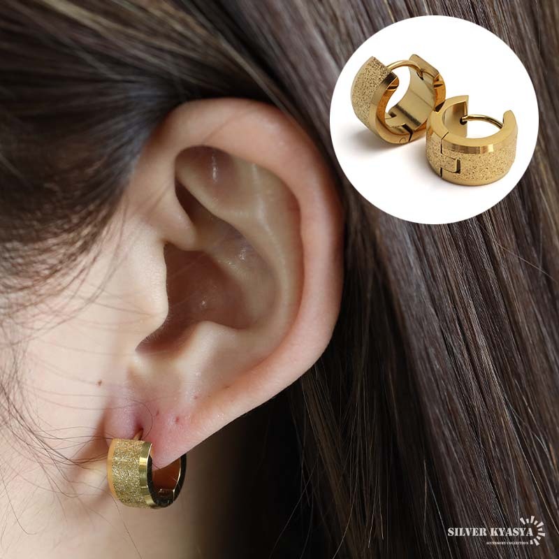 ステンレス フープピアス 太めピアス ゴールド ワイドピアス 幅広 シンプルピアス 両耳用2点 女性 レディース 金アレ対応