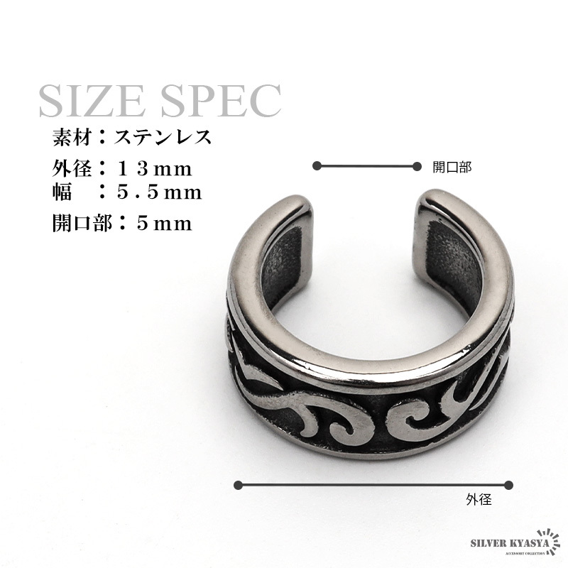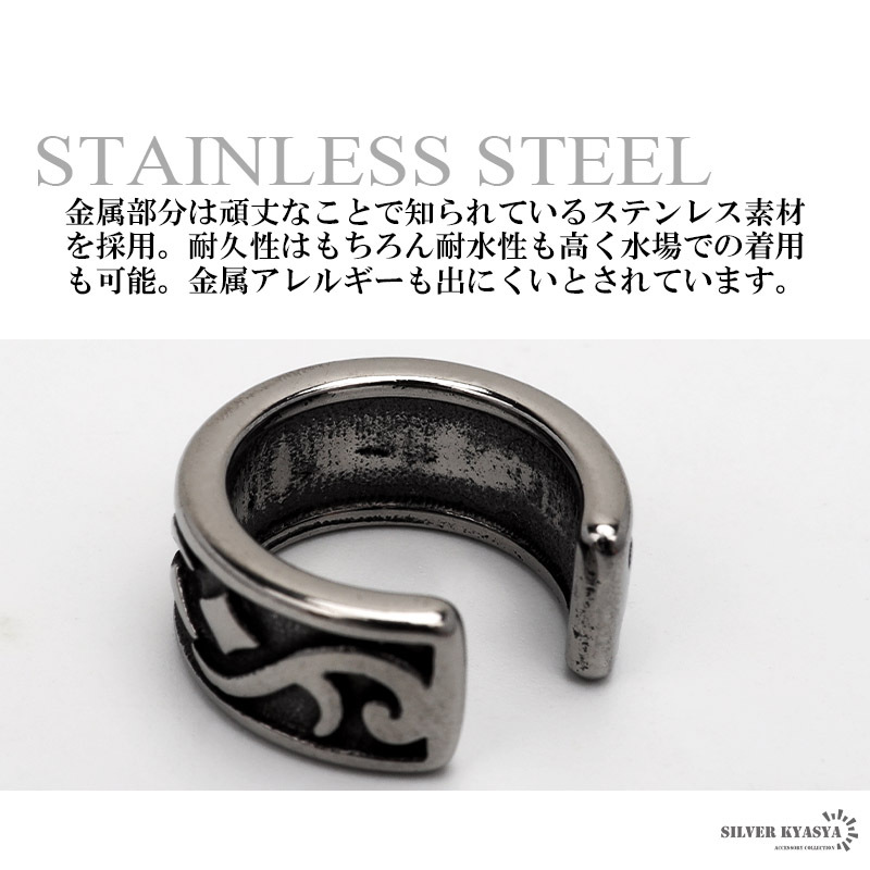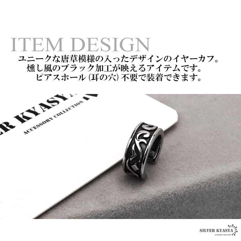 ステンレス イヤーカフ メンズ 唐草 アラベスク トライバル シルバー ピアス EARCUFF 金属アレルギー 片耳一点
