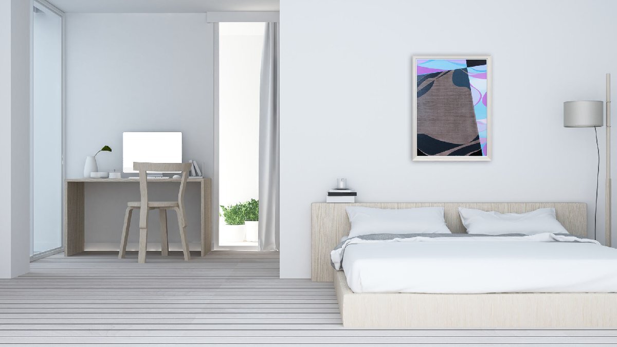 日本らしい形や色彩で情感豊かに描かれた抽象画