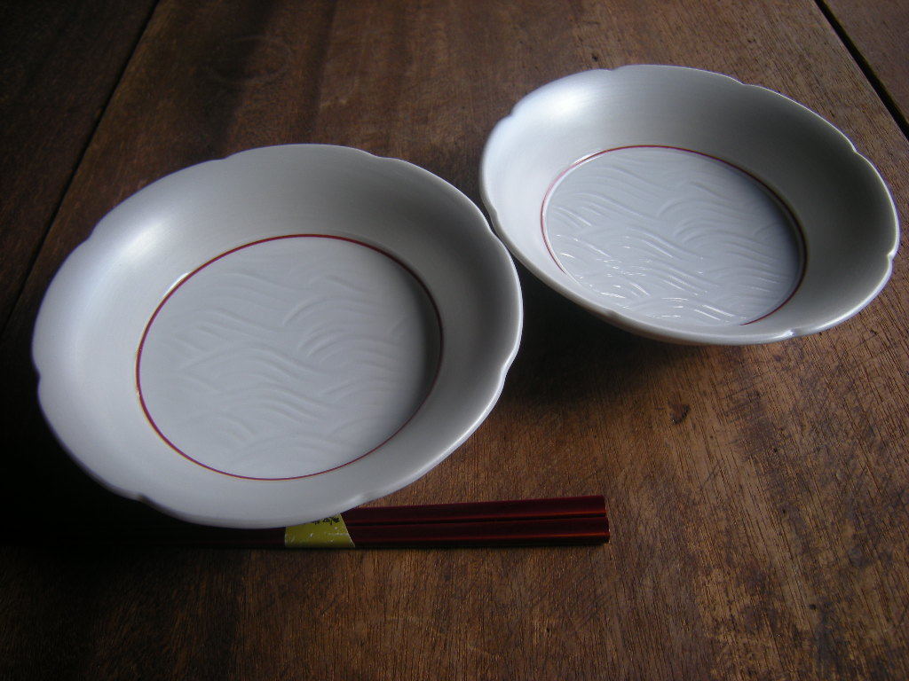 料亭うつわ◇現品限り【新品*廃番】銀巻帯 朱線 橘 盛皿 5.5寸(16.7㎝x5㎝)1枚から *高級うつわ*