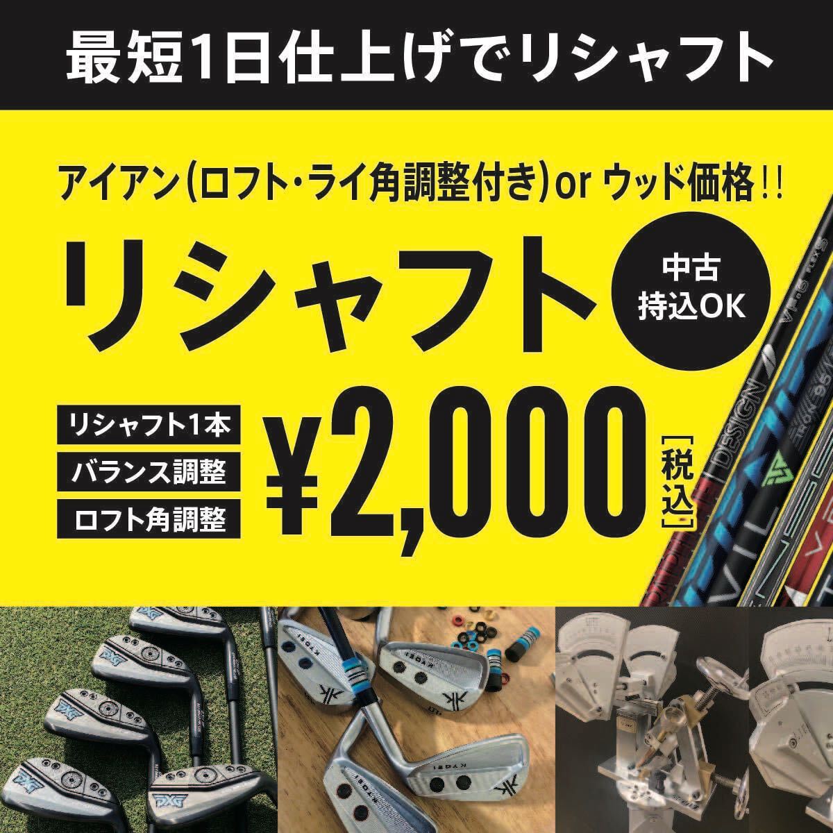 リシャフト シャフト交換 9本 18,000円  中古 新品 大歓迎!! 最短仕上げ ロフト・ライ角調整付き