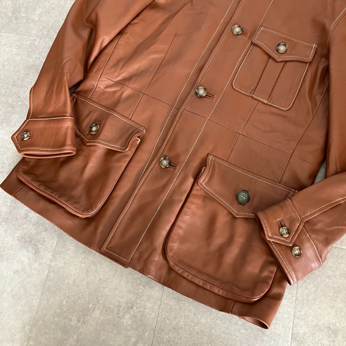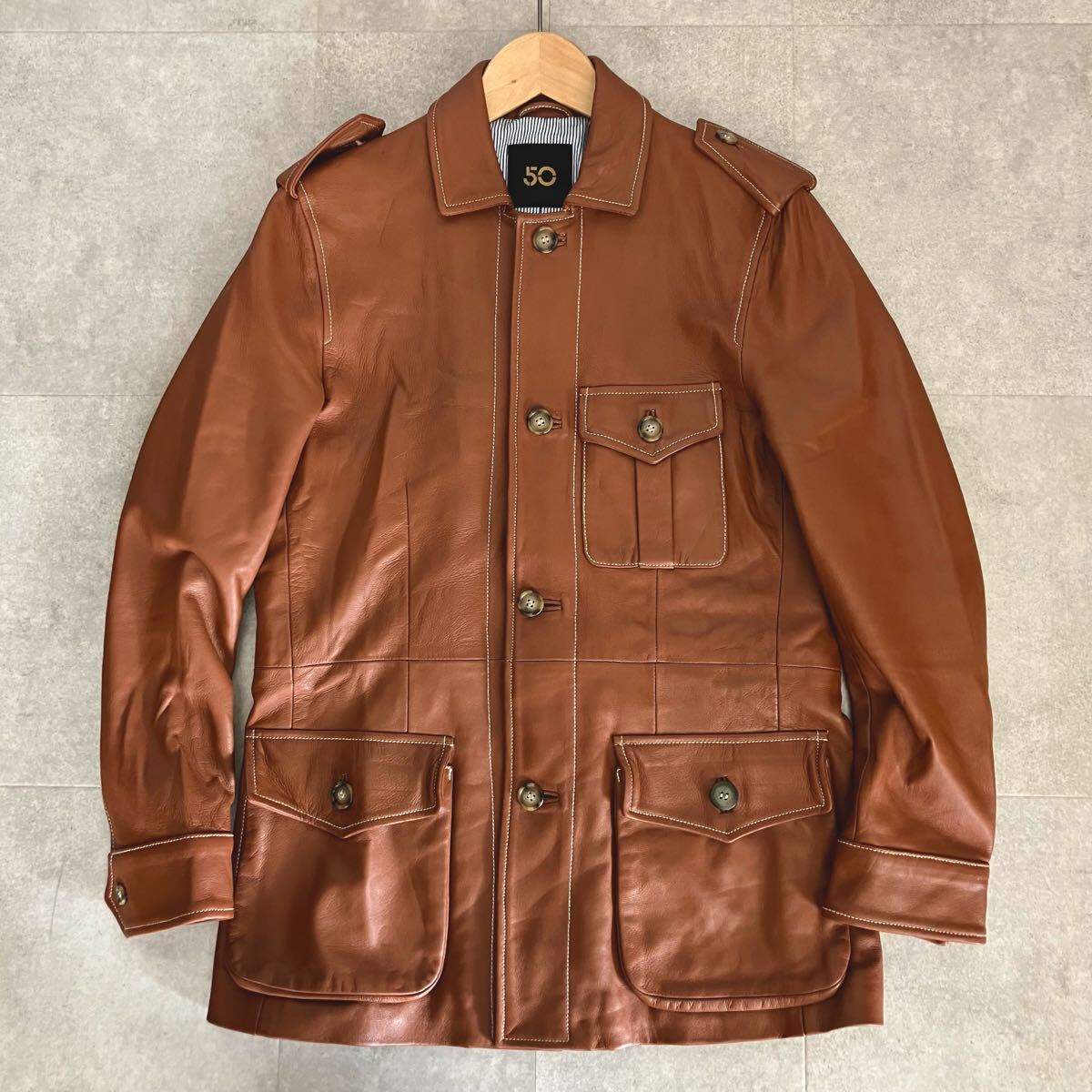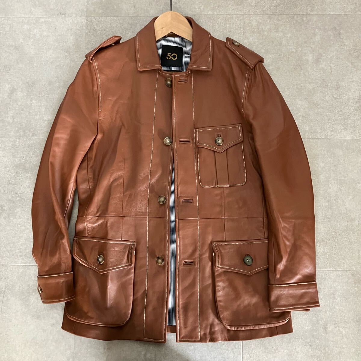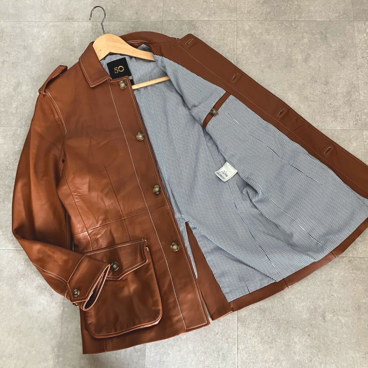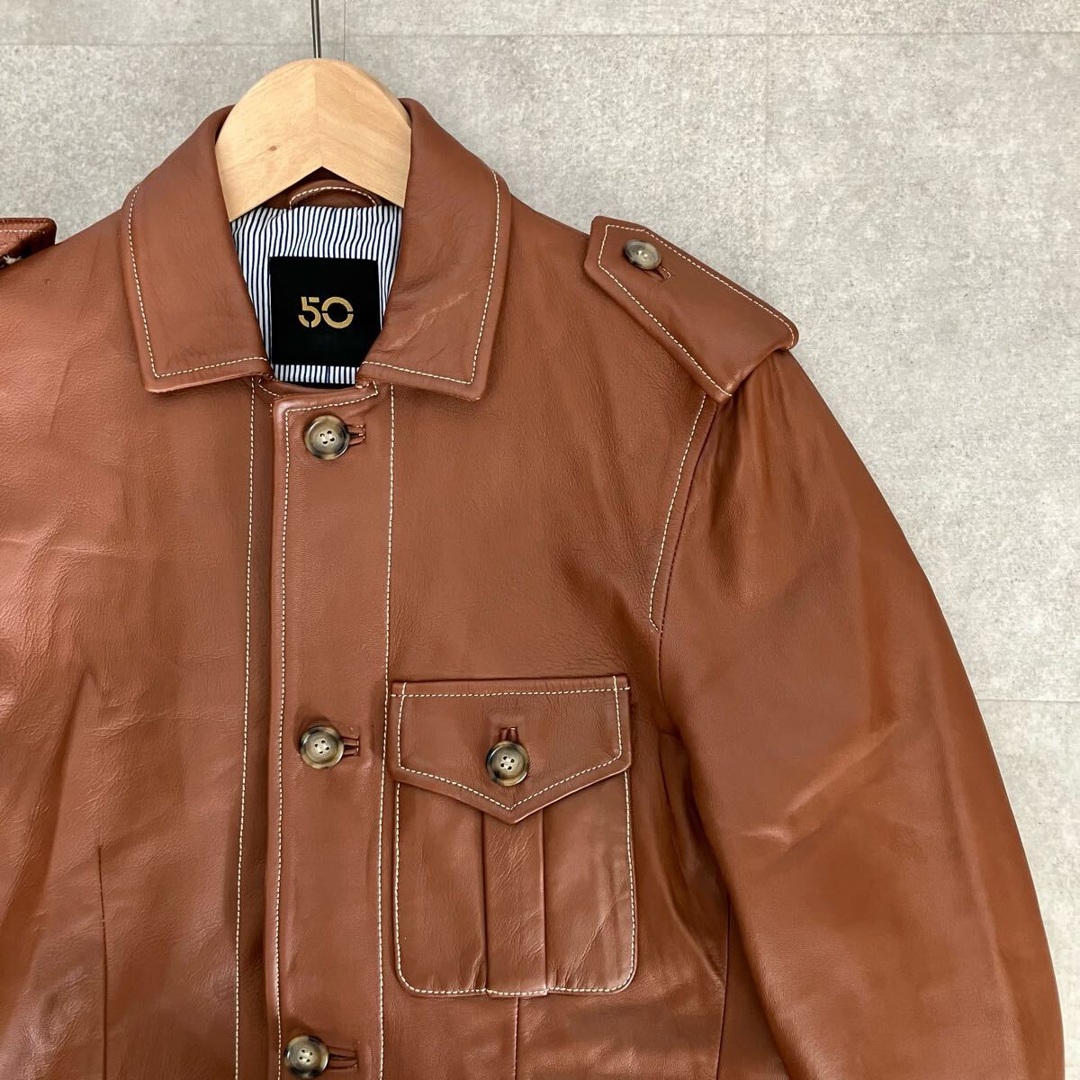 ●【大人の上品さ】Cinquanta(チンクアンタ)イタリア製 羊革 ラムレザー ジャケット/ミリタリー/size(44)/メンズ/ブラウン/本革/美品