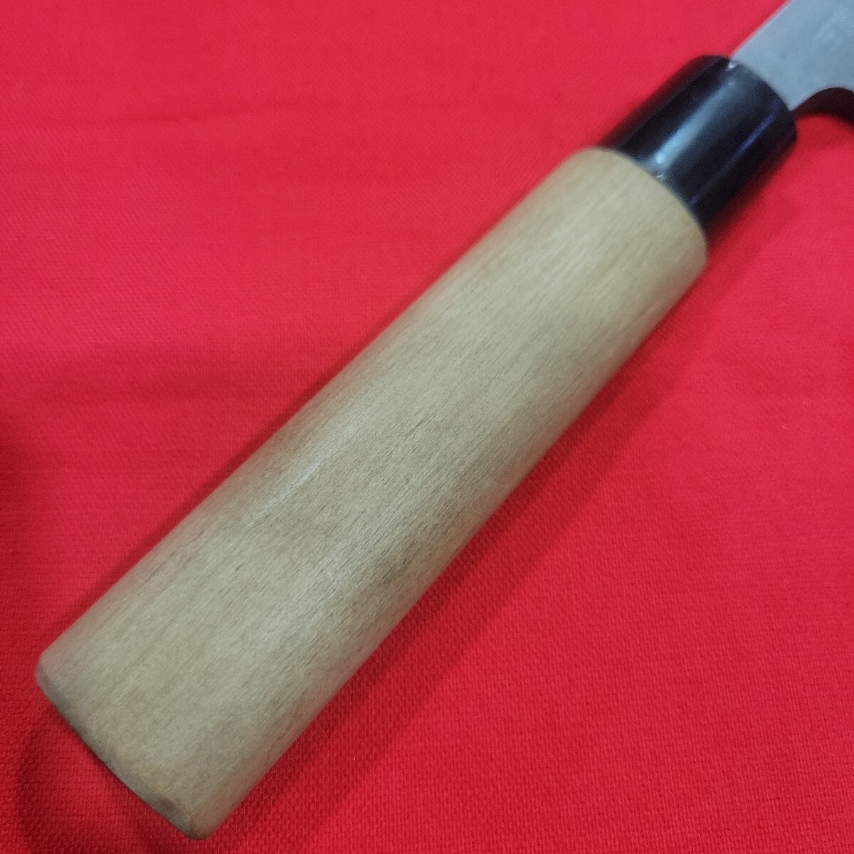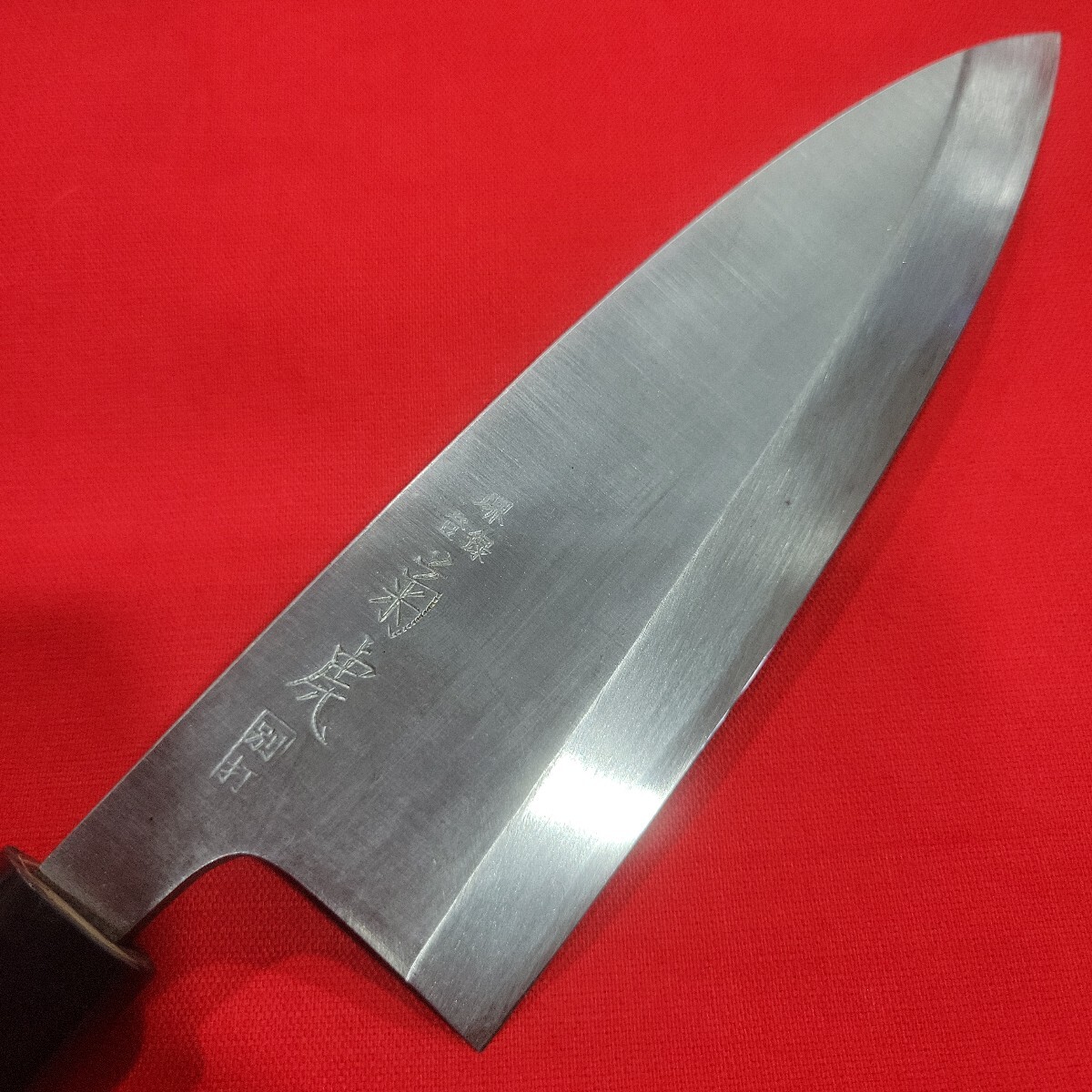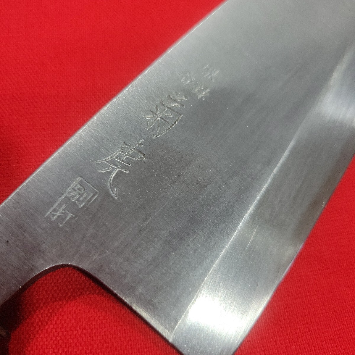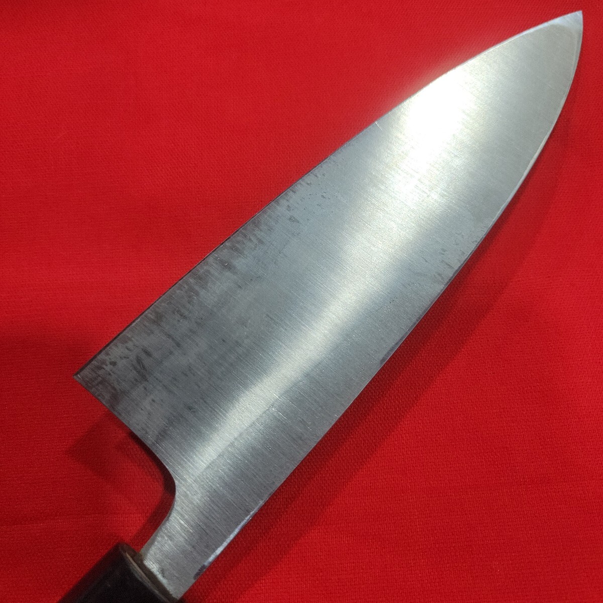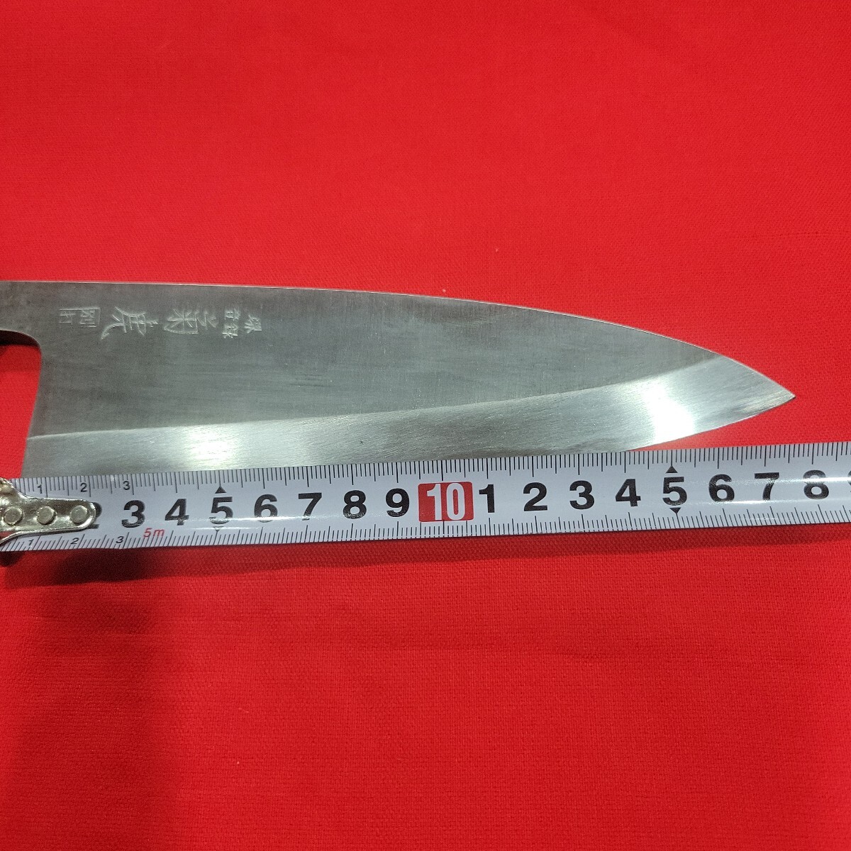 | こちらは中古包丁です。 堺の研ぎ師に包丁を研いでもらいました。 直ぐにお使いいただけると思います。 状態は写真でご確認お願いいたします。 ↓下記をお読みください↓ ※自宅保管になりますのでノークレームノーリターンでお願いします。 ※中身の確認は到着から3日以内にお願いいたします。 到着から1週間後に問題があると言われた場合は対応不可です。 到着からの保管期間になんらかの問題か発生したのか、発送から到着までの問題か、発送前からの問題かが分からなくなる為。 ※他の入札者様に迷惑がかかる為、入札削除はできません。 ※間違えて入札された際は自己責任の上、個人で転売するなりの解決をお願いします。 ※配送業者が送料の規格を変更した場合は、その送料になります。 表示している送料表示は出品当時のものと受け止めていただける様にお願いいたします。 ※発送方法は不着のトラブルを避けるため追跡ができる方法のみとなります。 ※落札後の手続きから24時間以内に返事を返すようにはしておりますが、1日の中で数回パソコンを定期的に見ておりますが、すぐには対応することが困難となります。 基本11時ー19時の間で連絡をしております。 簡単な連絡は上記の時間外でも返せることがあります。 21時以降を終了時間にしているのは翌日まとめて手続きをする為で、落札時間に合わせて見るというわけではありませんのでご理解お願いいたします。 | |||