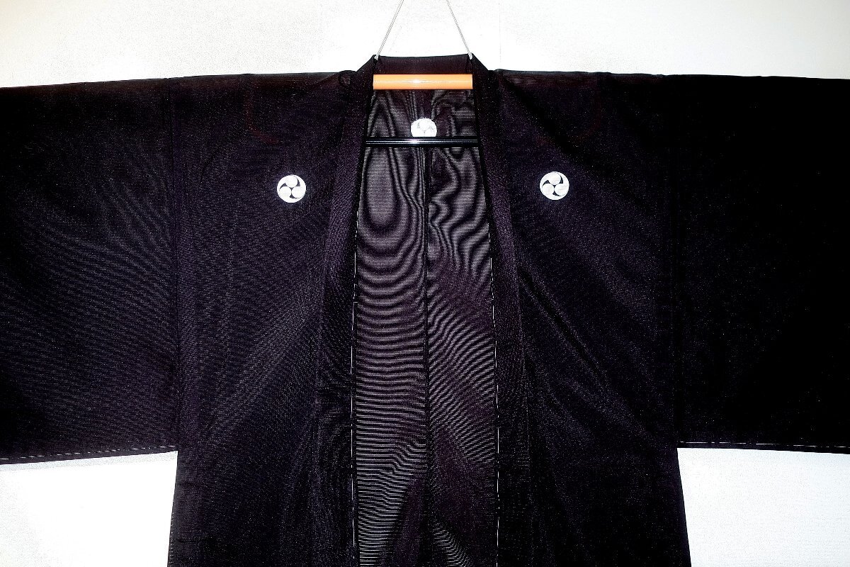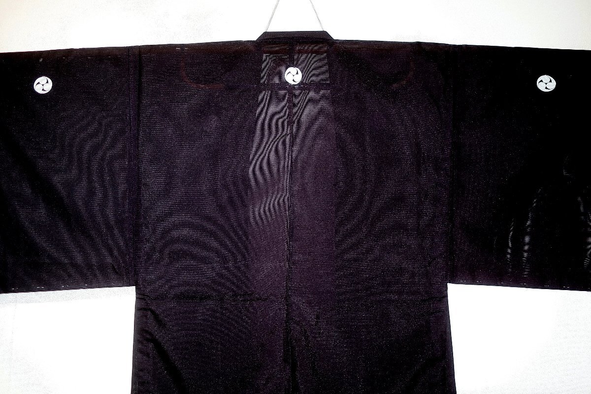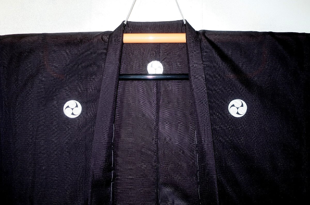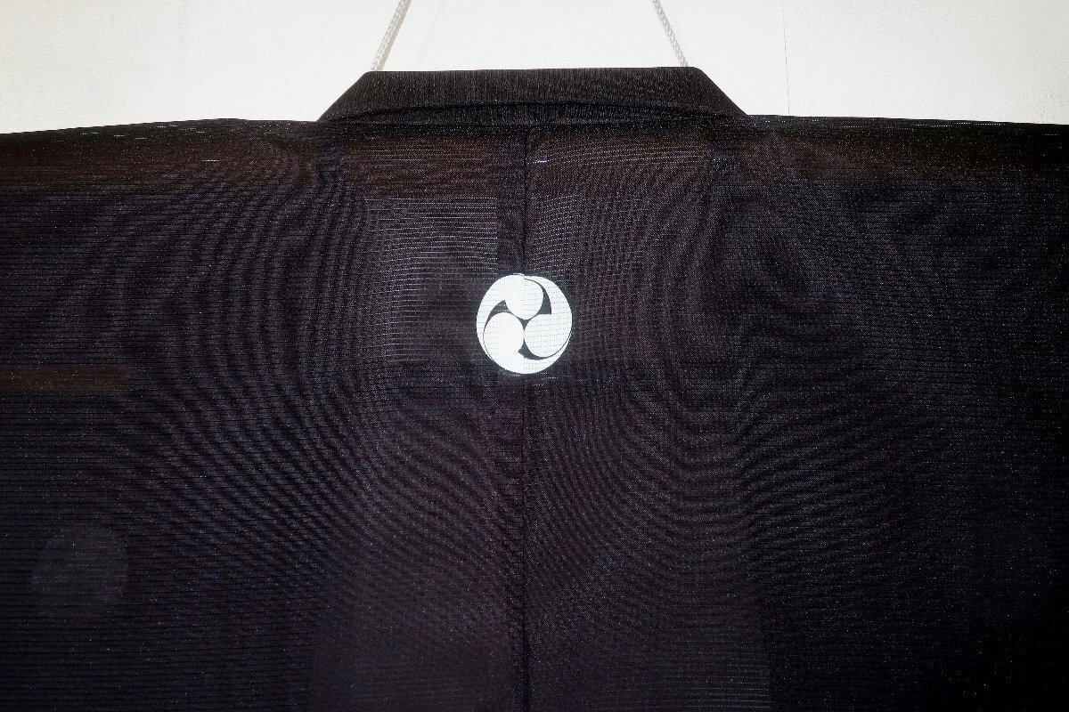 ●この商品の素材と色と用途 洗いたいけど化繊然とした風合いは避けたいという方に向く黒紋付です。裏のない単衣です。家庭で洗濯も可能な便利な品です。新品仕立て上がりです。背中心あり、ミシン縫いですが呉服と遜色ありません。用途が広がる品ではないでしょうか。 | ||||||