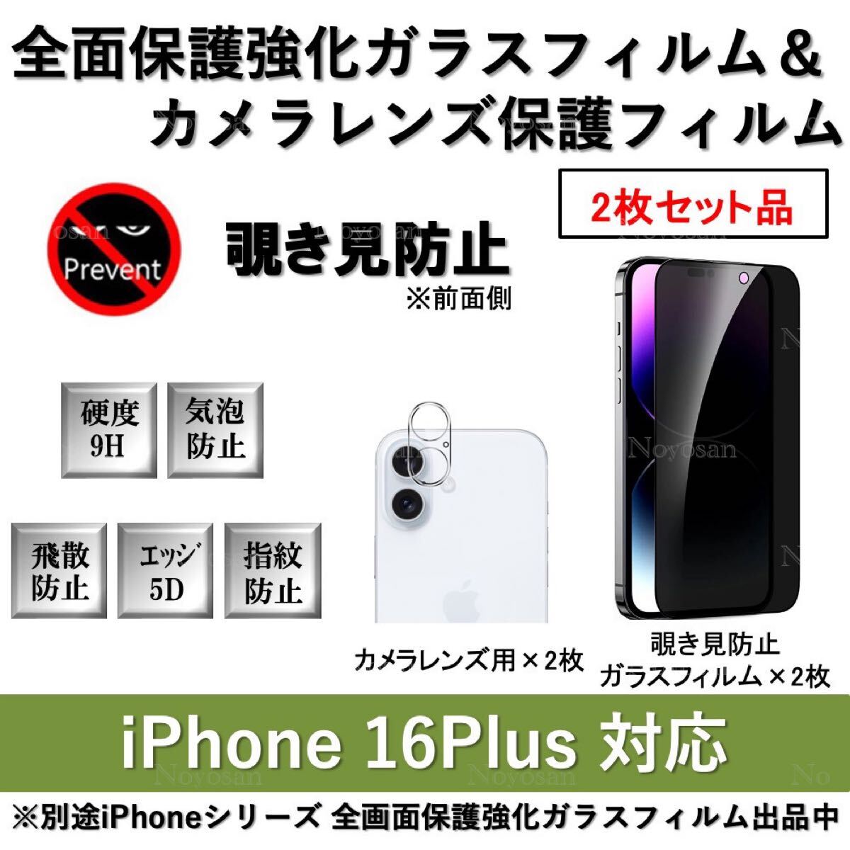 【新品】iPhone 16Plus 覗き見防止全面保護ガラスフィルム&背面カメラレンズ用ガラスフィルムセット2式