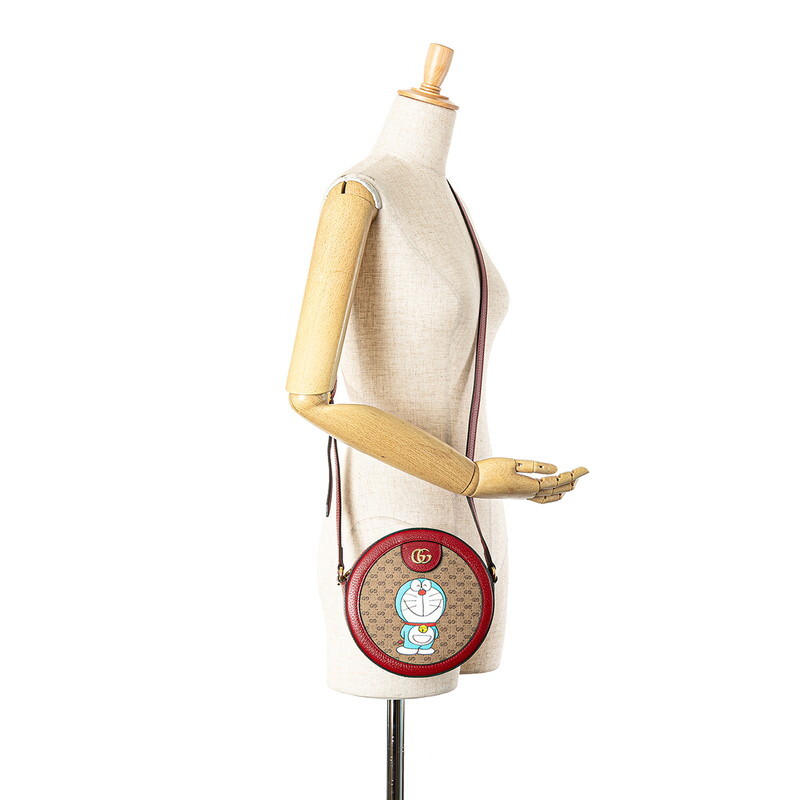 グッチ × ドラえもん ミニ GGスプリーム 斜め掛け ショルダーバッグ 625216 ベージュ レッド PVC レザー レディース GUCCI 【中古】