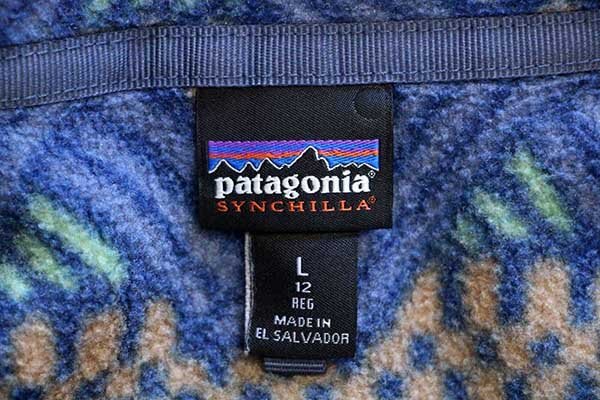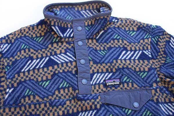 ★patagoniaパタゴニア 総柄 シンチラ ライトウェイト フリース スナップT CICN ボーイズL★アウトドア プルオーバー 幾何学模様 キッズ