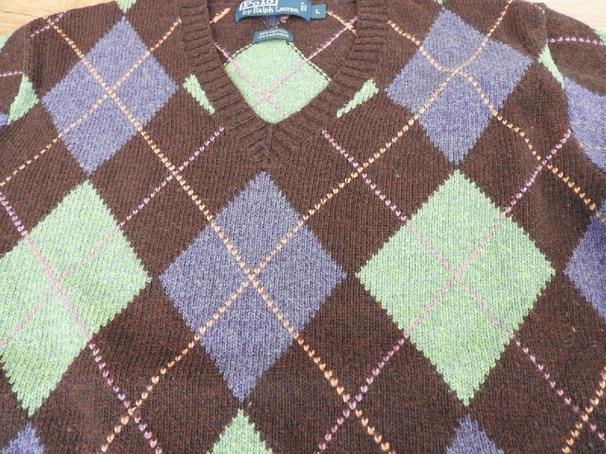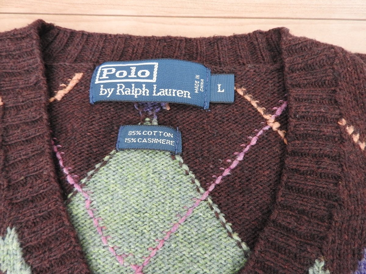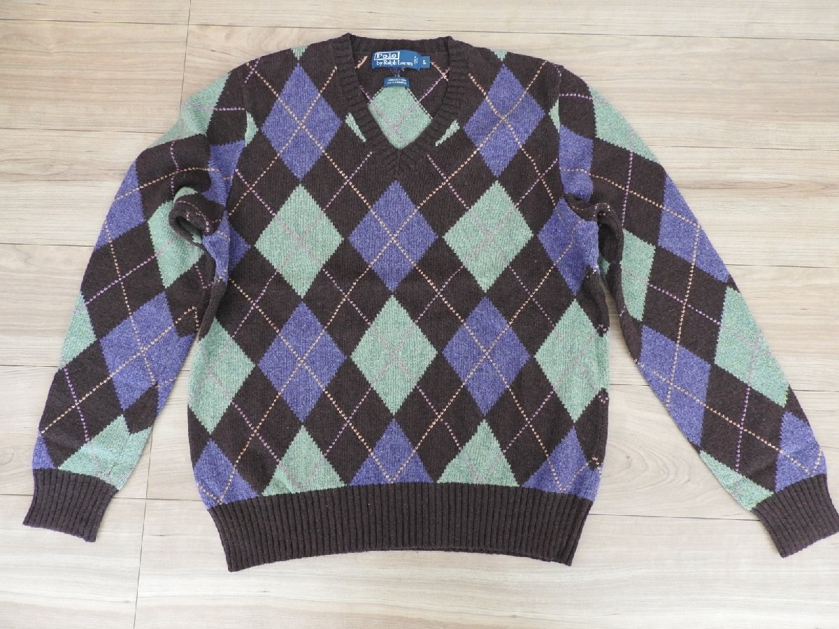 ★★送料無料 Polo by Ralph Lauren ポロ ラルフローレン アーガイルチェック柄  Vネック  ニット セーター L