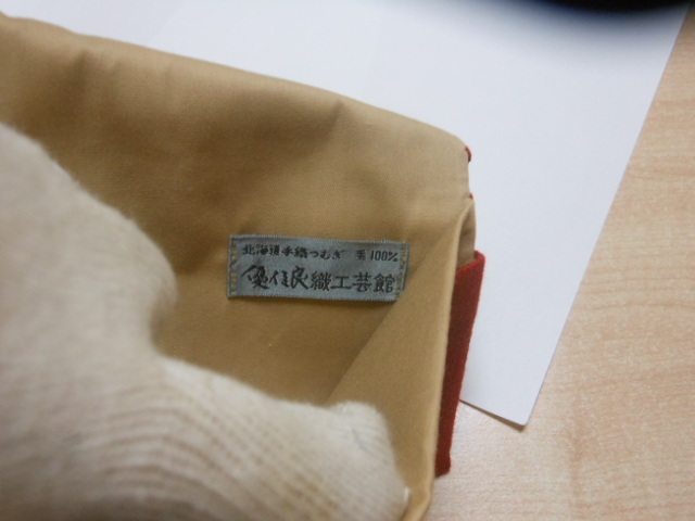 送料無料 北海道の工芸品 毛100% 手摘み手織りで織りなす美しい「優佳良織り」 長財布(札入れ)&オリーブ染大判ハンカチ保管未