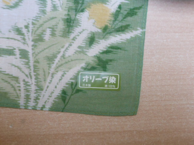 ②オリーブ染め大判ハンカチ   綿100% 日本製