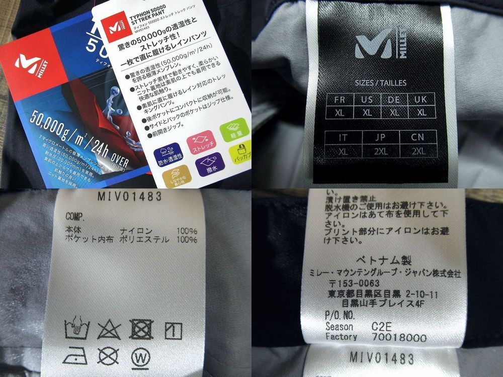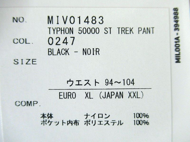 送無 JP XXL 新品 MILLET ミレー MIV01483 ティフォン 50000 防水 立体裁断 ストレッチ トレック パンツ アウトドア トレッキング 黒 ①