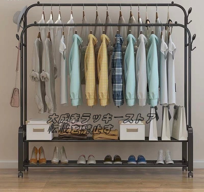 全長135CM ハンガーラック 2段 可動棚 高耐荷重 コートハンガー 収納棚 スチール棚 洋服掛け おしゃれ ホワイト