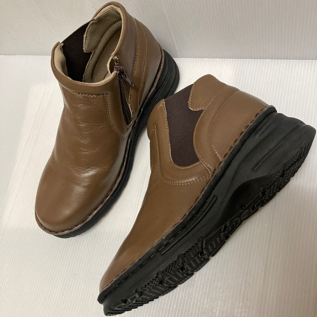 ★お買い得!★婦人ショートブーツ 71239 KHA(カーキ) 23.5㎝ 幅EEEE 軽量底で軽くて歩きやすい ファスナー付きで脱ぎ履き簡単