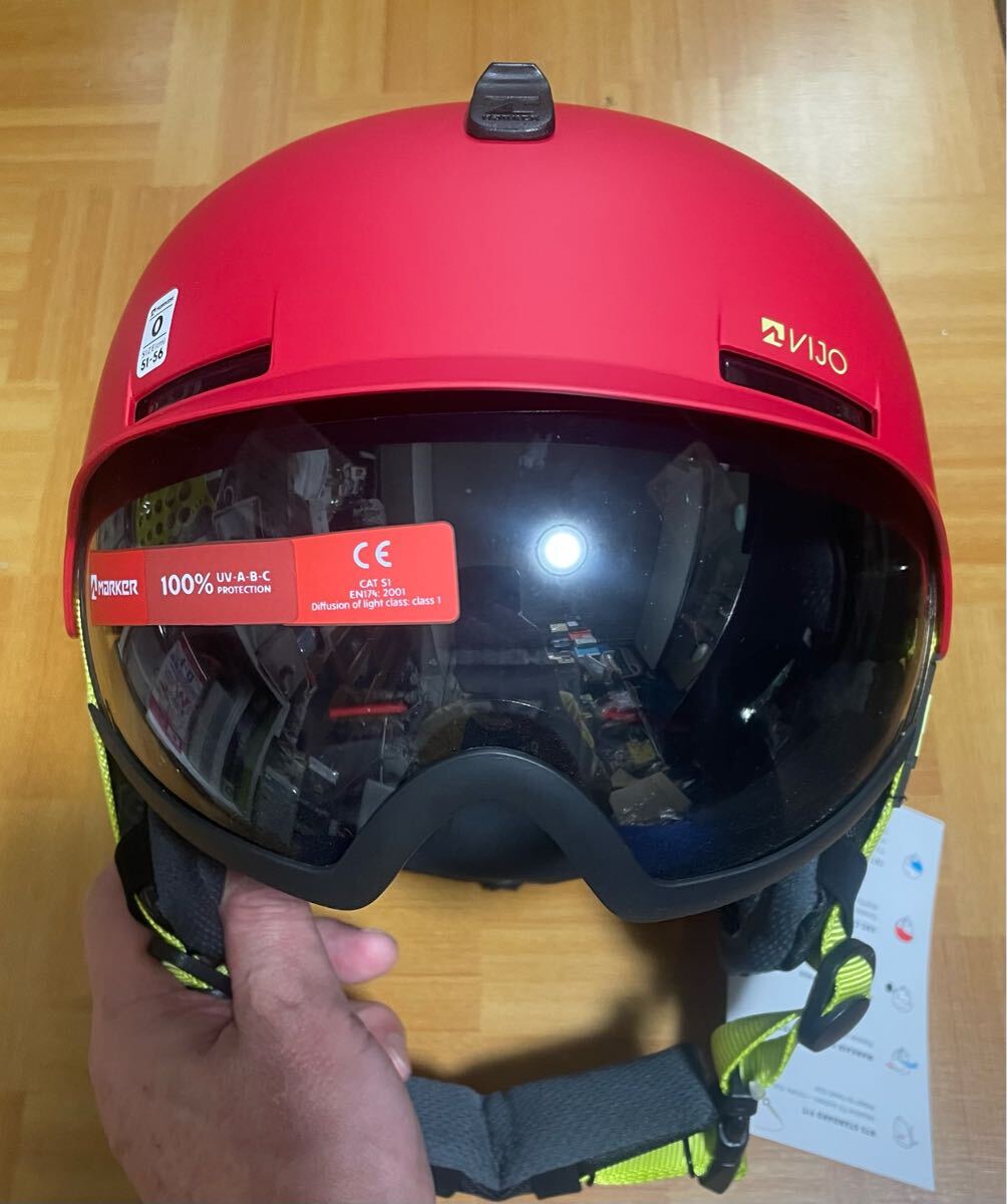 ☆即決・送料込☆新品☆MARKER ヘルメットバイザー式 VIJO 51-56cm RED/YELLOW マーカーレッド 安全基準クリア ゴーグルいらず 35%OFF
