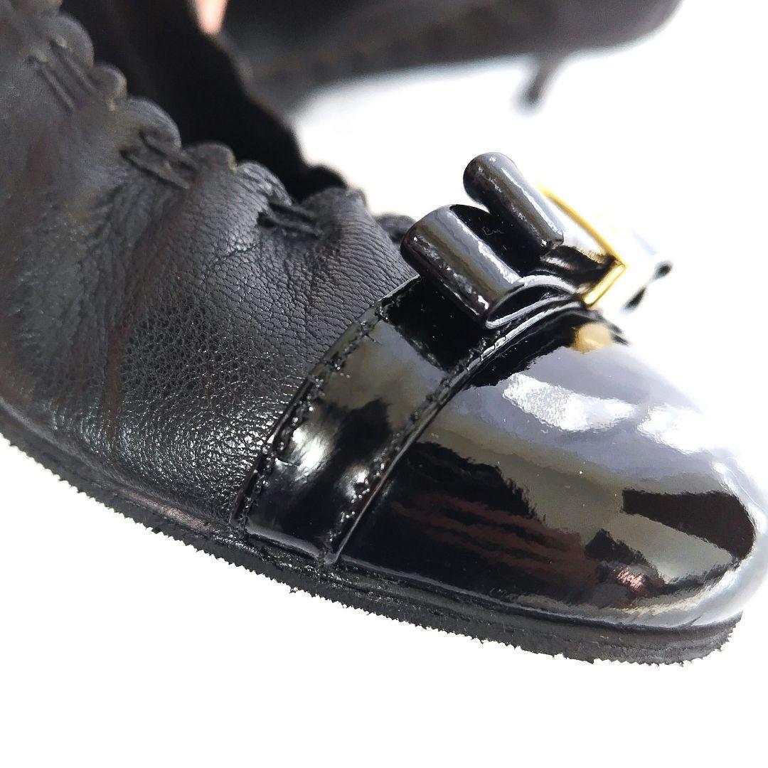 柔らかなシボ革に、爪先にエナメルを使用したおしゃれなお品。