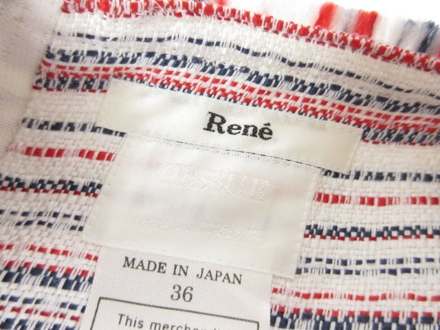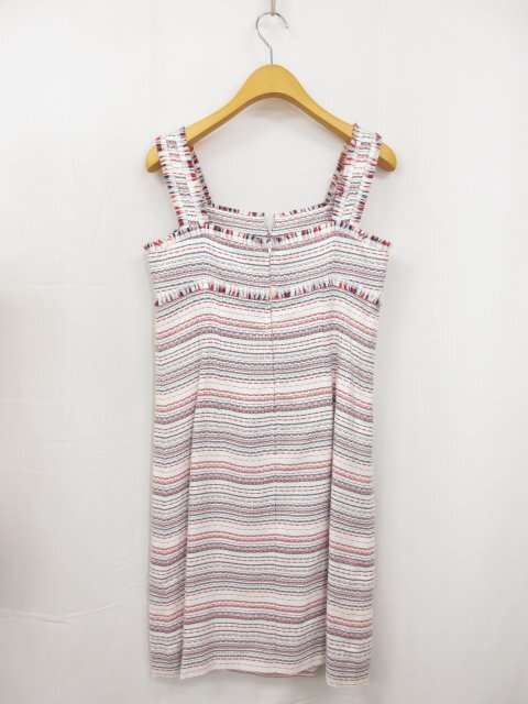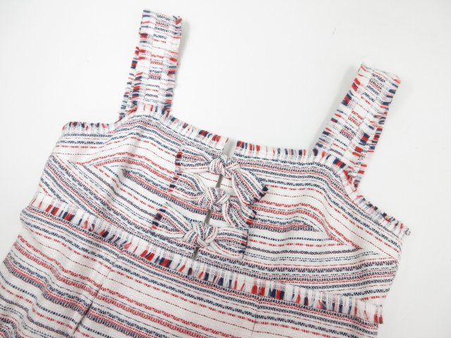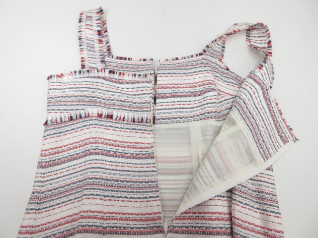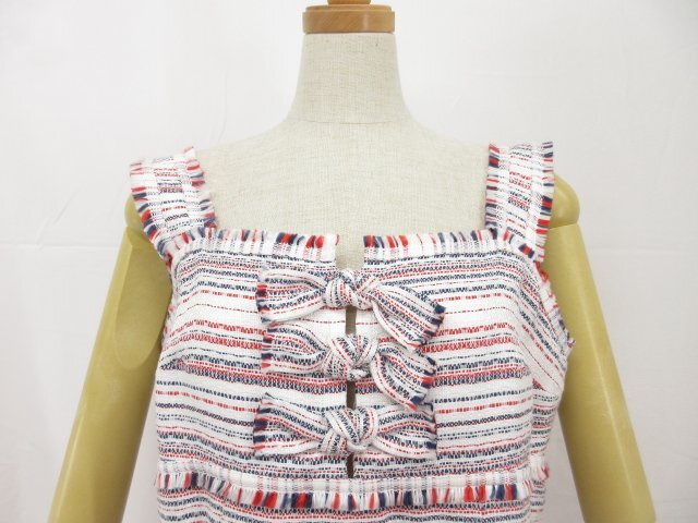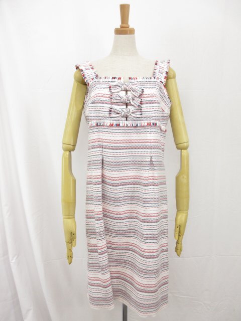 HHほぼ未使用品【Rene ルネ】6916320 リボン装飾 サマーツイード調 ノースリーブワンピース (レディース) size36 白×赤×紺系 ◯17LO3562