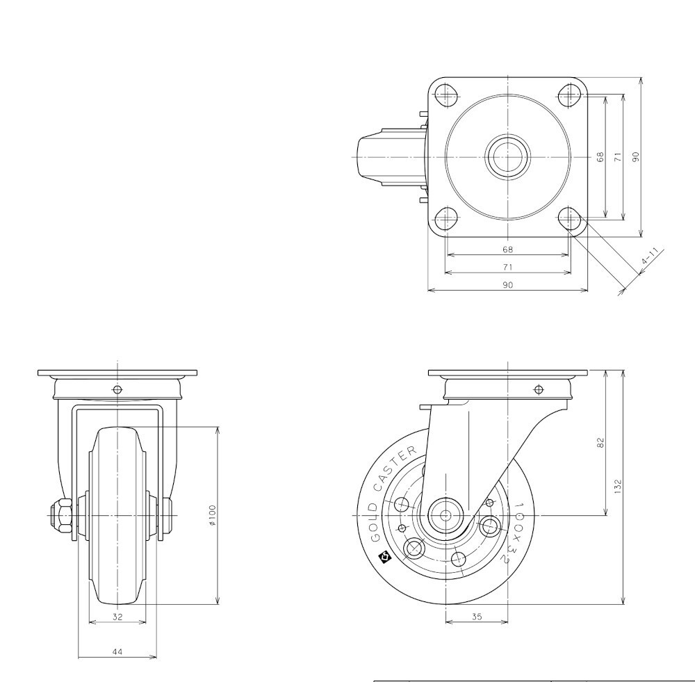 材質(車輪)鉄板ホイール・ゴム巻車輪