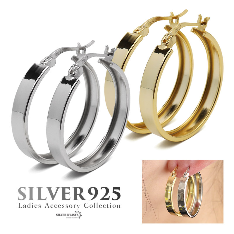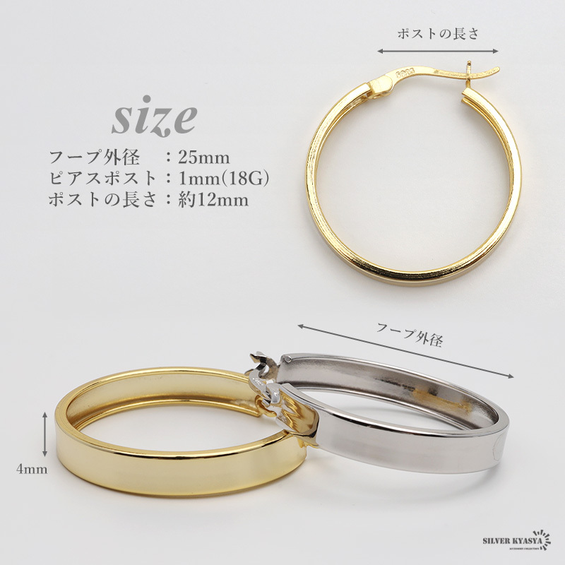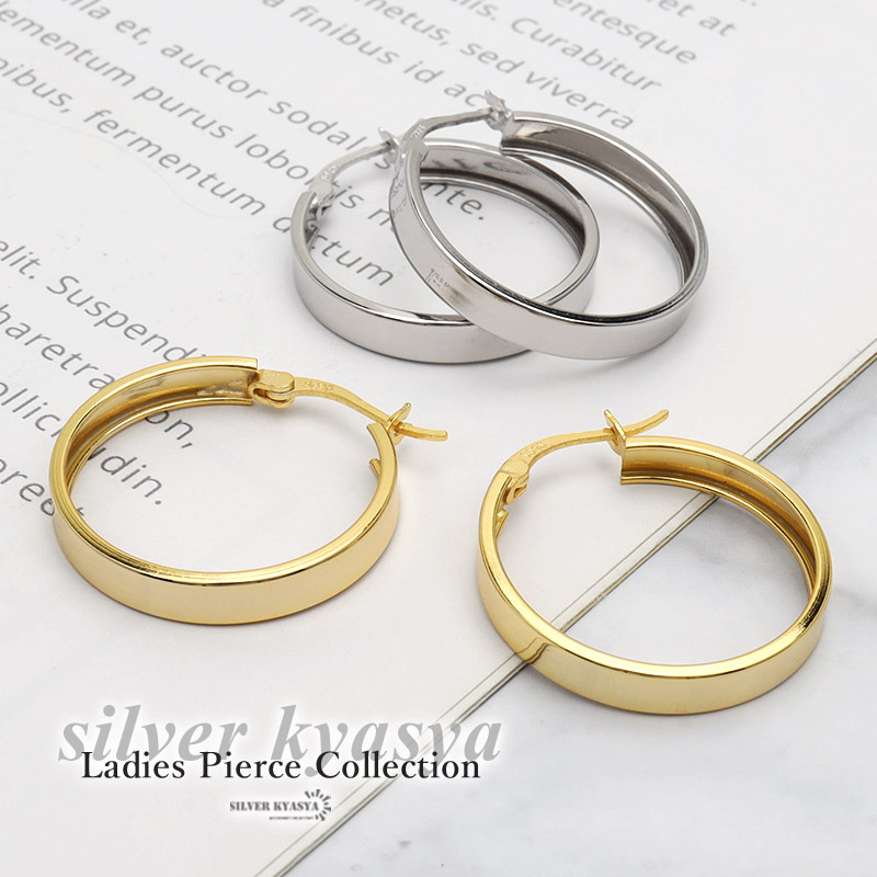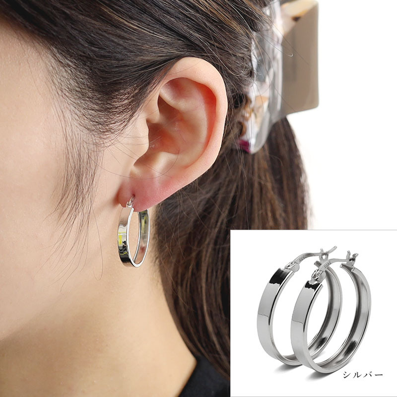 飽きの来ないシンプルなデザインが魅力の大ぶりフープピアス。表面のツヤっとしたテクスチャも魅力です。