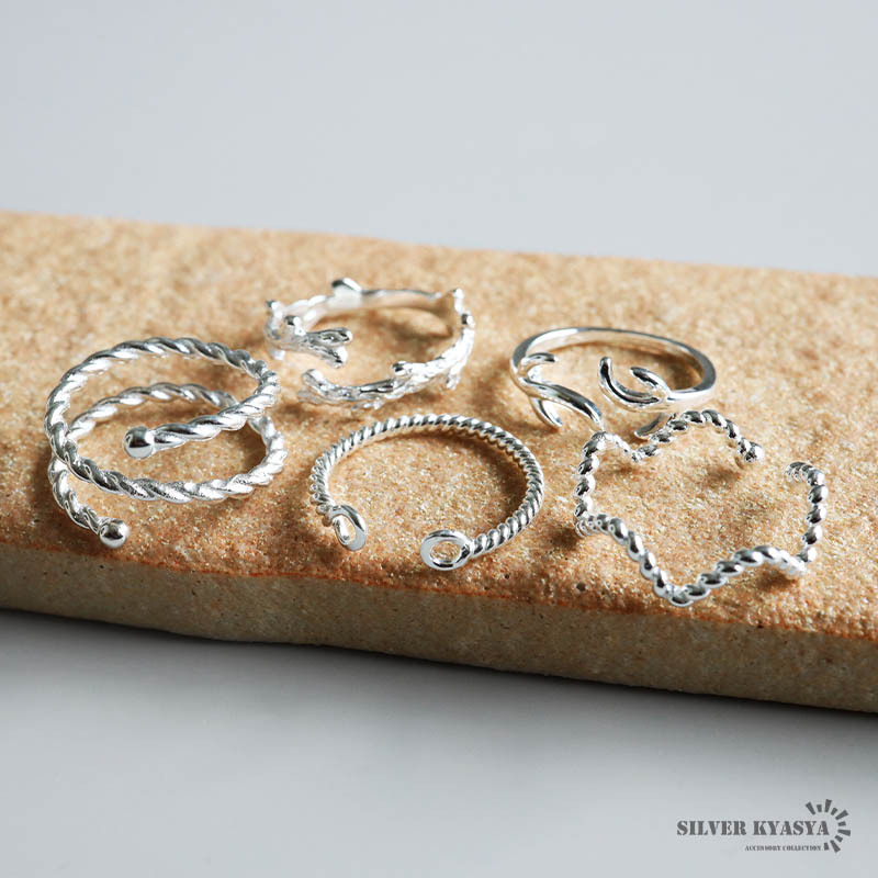 細身で洗練されたスタイルのシルバーリング。ツイストや葉っぱをモチーフにしたデザインなど、指先にさり気なく個性を宿します。デザイン違いの全5タイプのバリエーションから選べます。