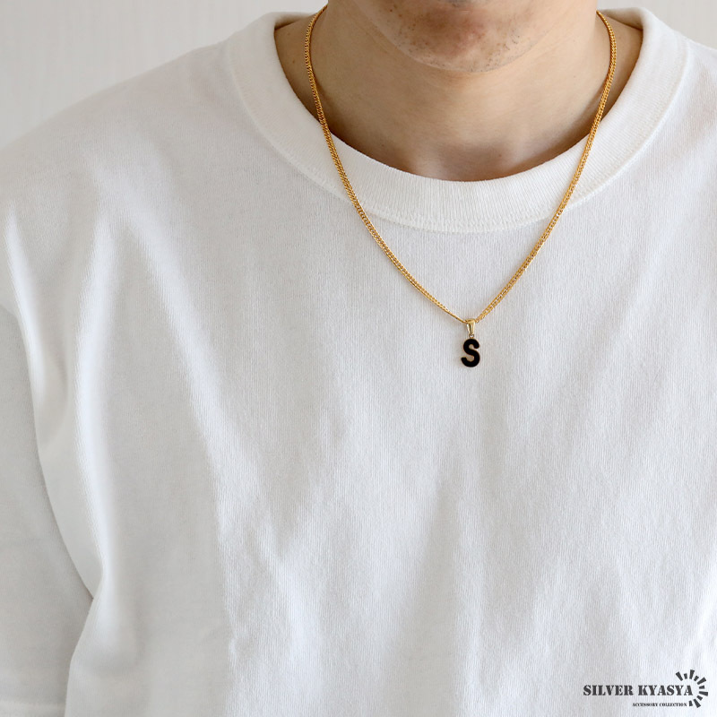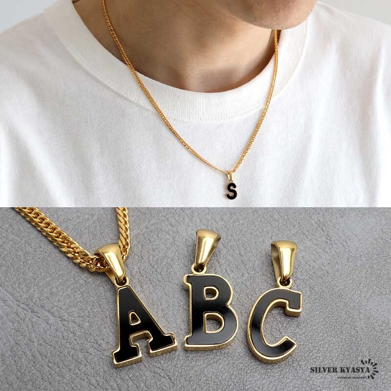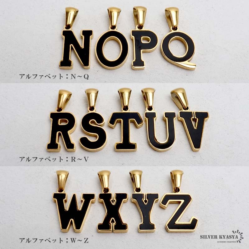 ブラックのアルファベットモチーフが洗練された雰囲気のネックレス。ブラックにゴールドの縁取りがシックで高級感ある仕上がり。自分へのご褒美や、大切な人への贈り物にもおすすめの一品です。