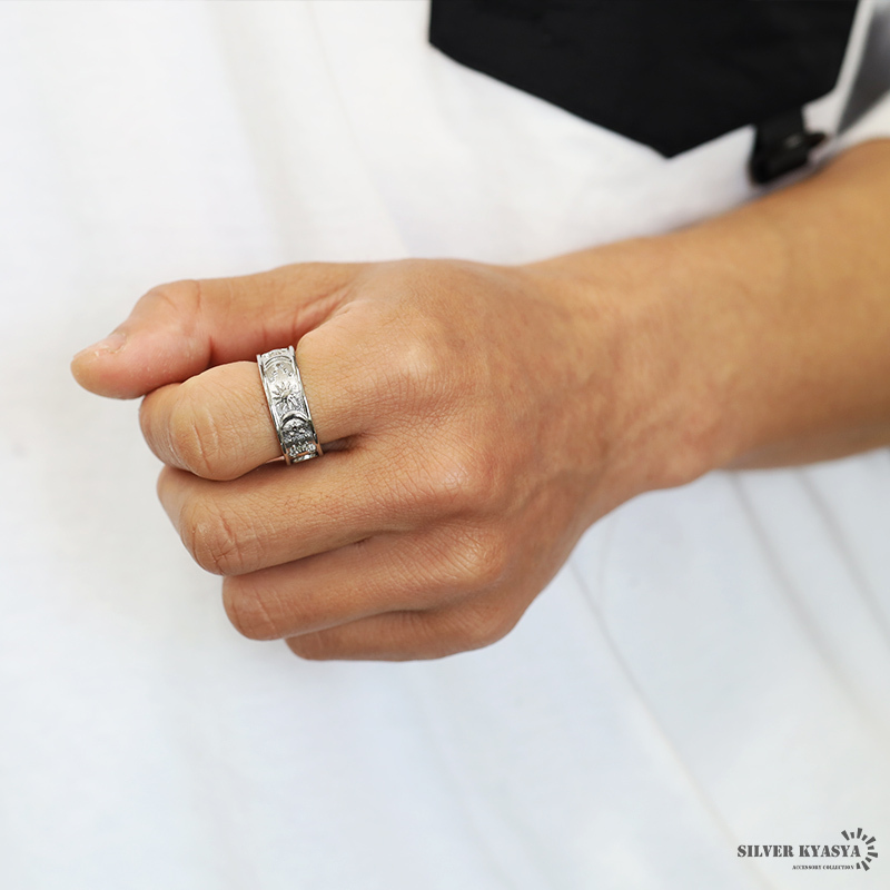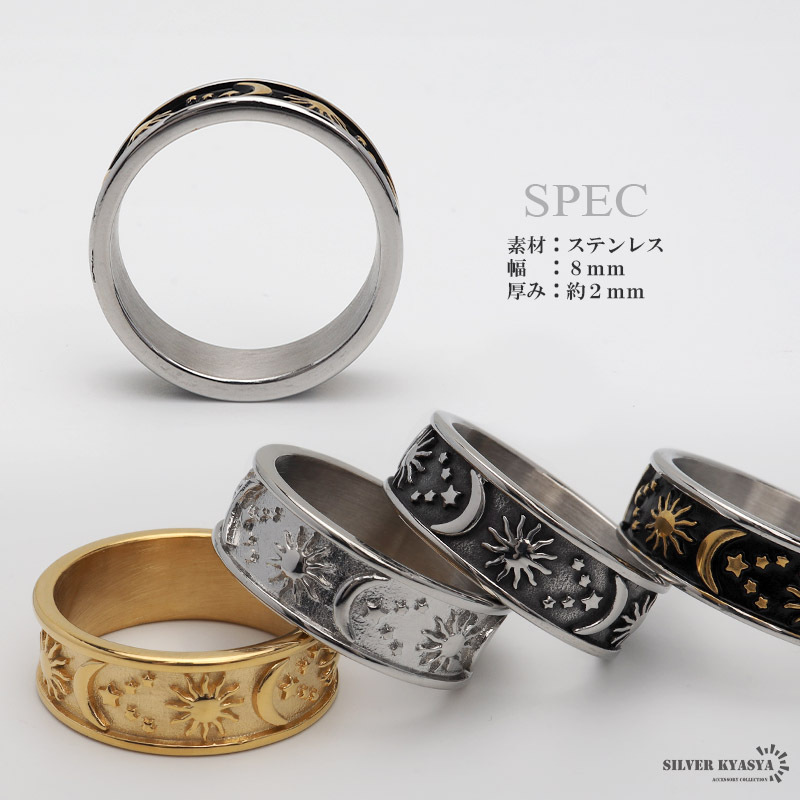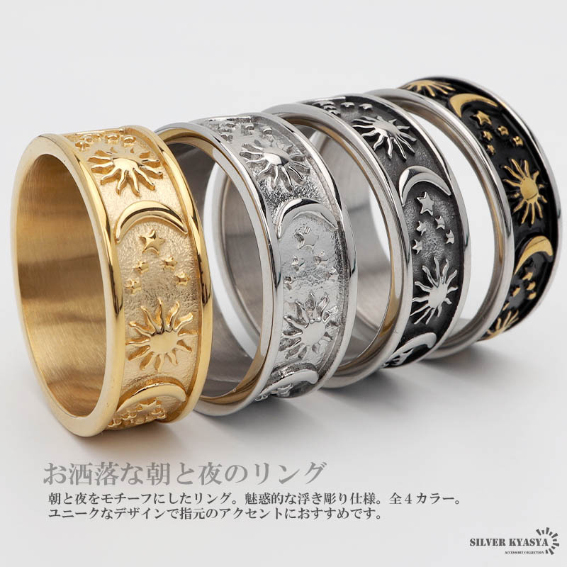 朝と夜をモチーフにしたリング。魅惑的な浮き彫り仕様。全4カラー。ユニークなデザインで指元のアクセントにおすすめです。