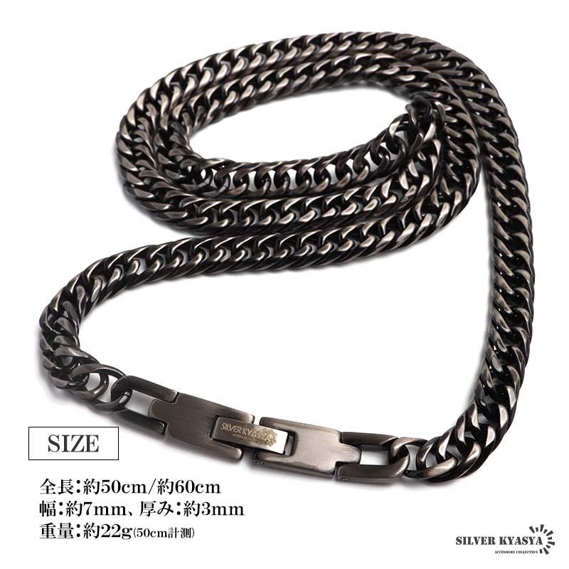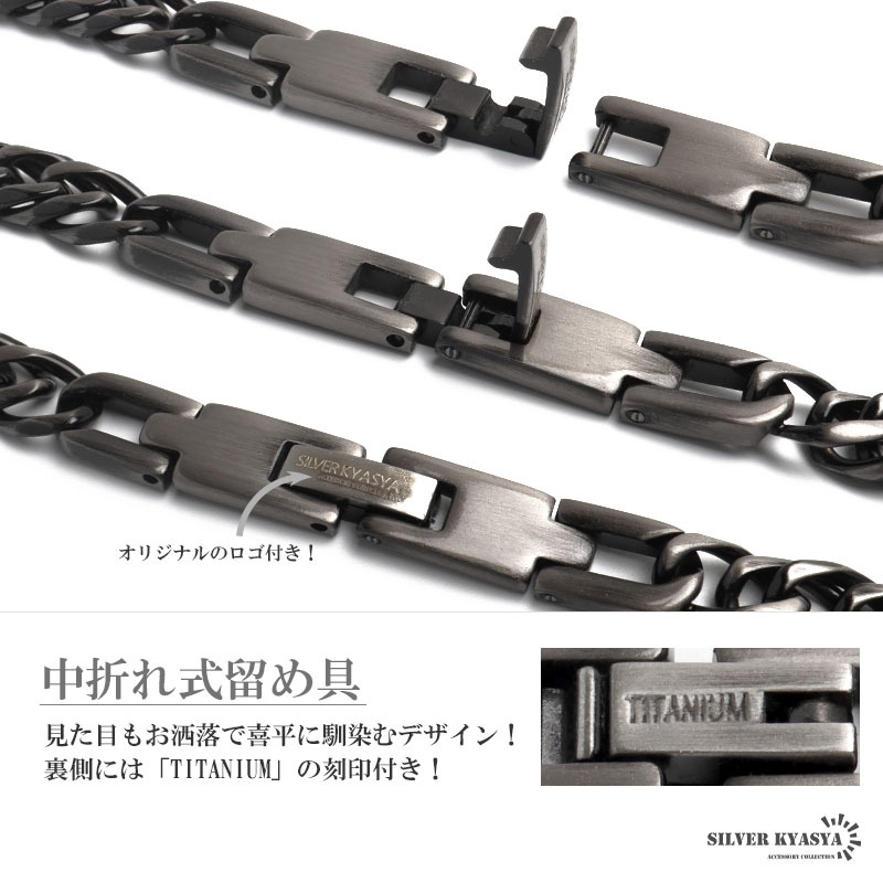 高密度で存在感あふれるダブル喜平のネックレスにチタンタイプが登場。程よいサイズ感で普段のファッションに馴染みやすいアイテムです。留め具は見た目がお洒落で人気の中折れ式を採用。