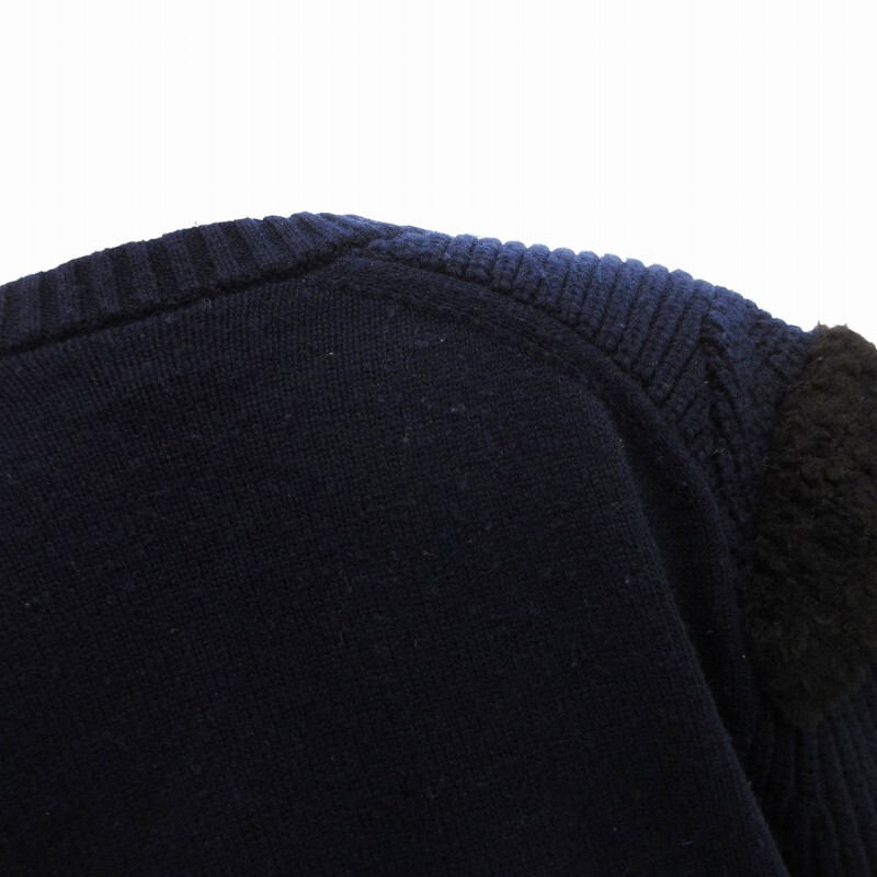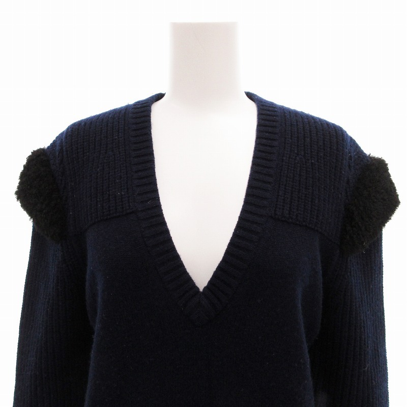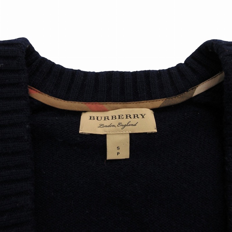 バーバリー ロンドン BURBERRY LONDON イングランド ニット セーター 長袖 ボア切替 Vネック カシミヤ混 S 紺 ネイビー
