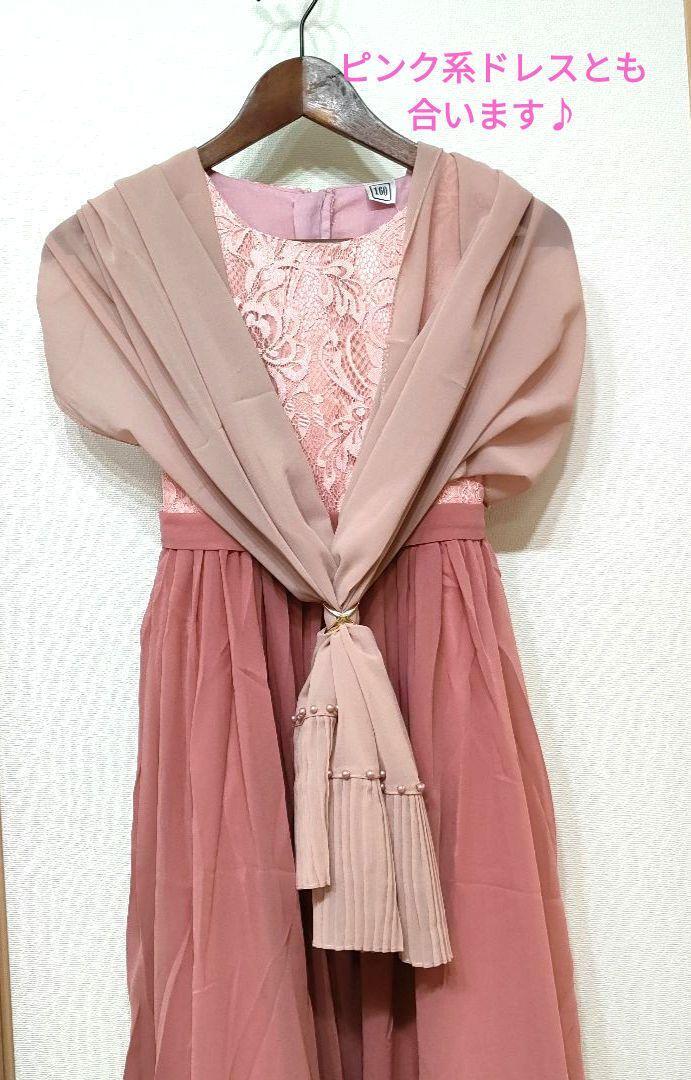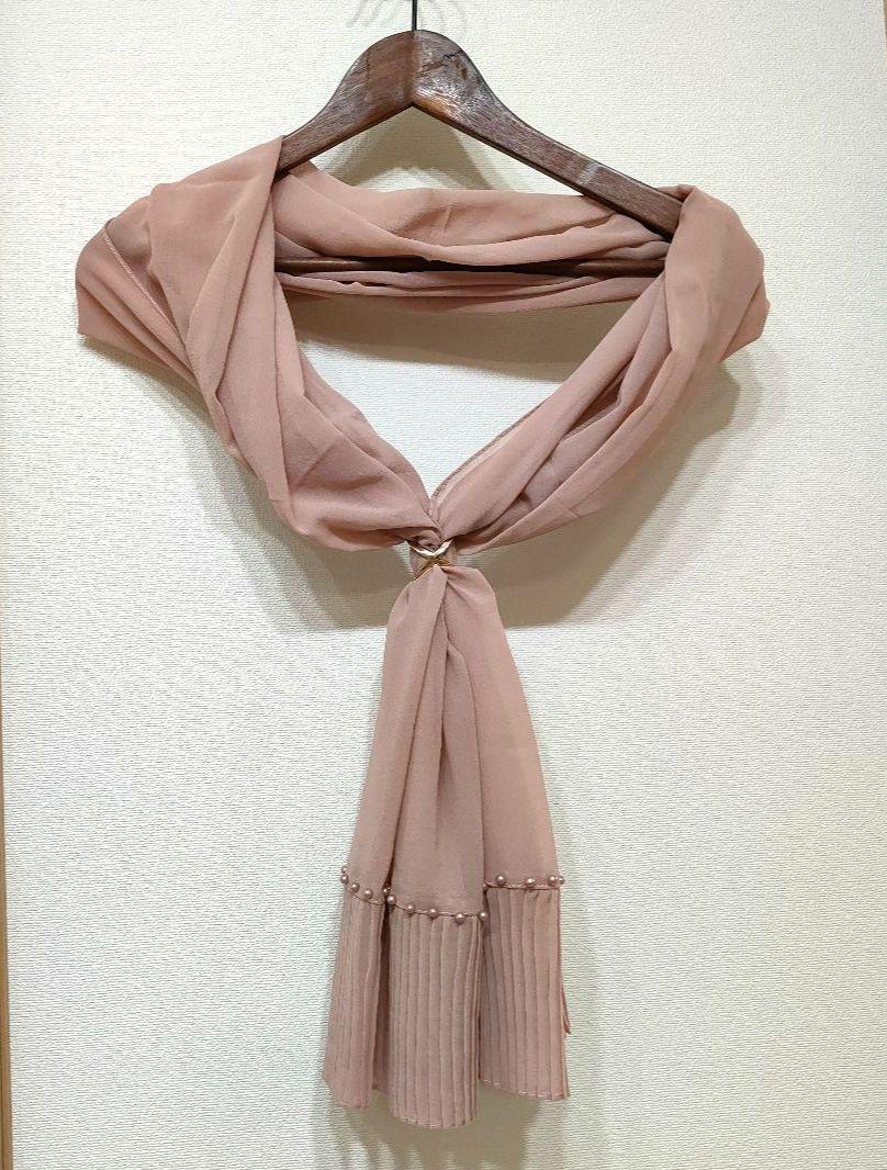 くすみピンク シフォンショール 細かいプリーツ&ピンクパール ストールリング付き