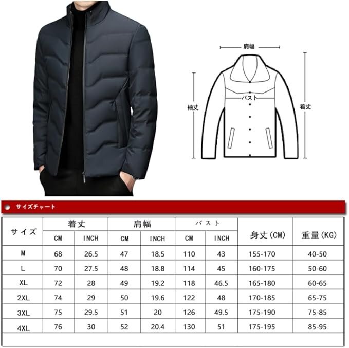 「81SHOP」ダウンジャケット メンズ ダウンアウター ビジネス ダウンコート 通勤 ダウンブレザー 防寒 防風 暖かい 秋 冬 ブルー
