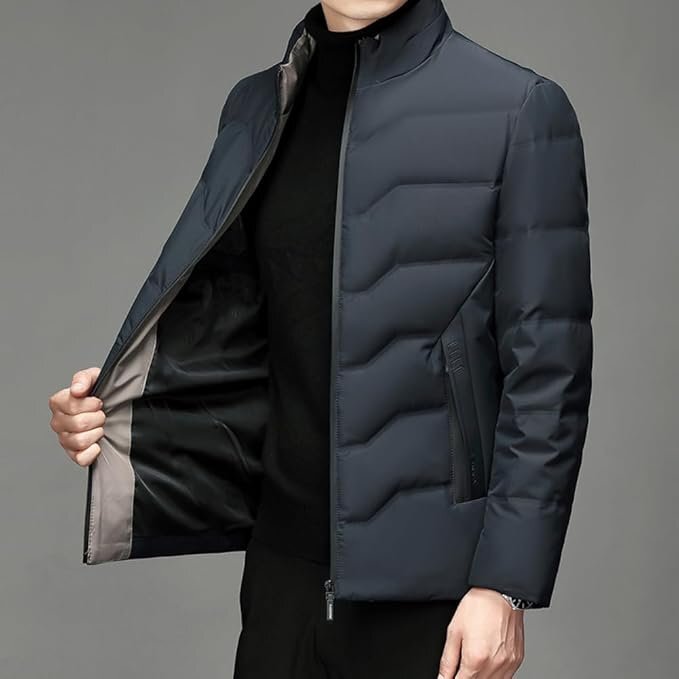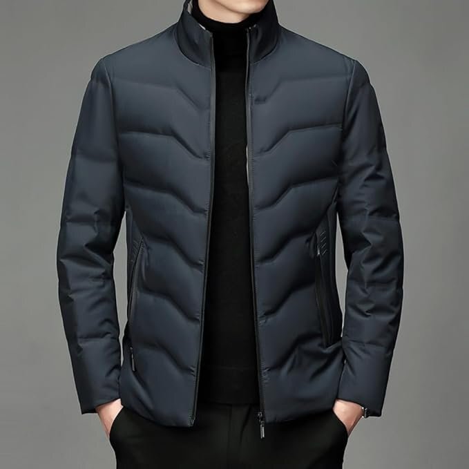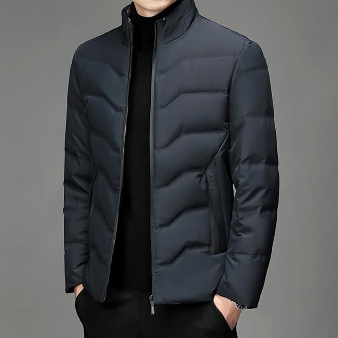 シンプルなビジネスダウンジャケット、どんなパンツやTシャツにも合わせます。