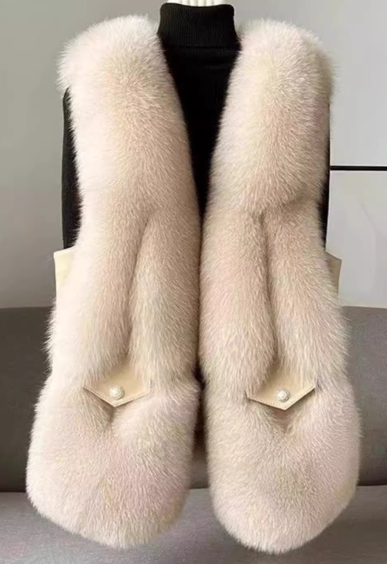 限定販売 人気新品 レディース フェイクファーベスト 毛皮ベスト ふわふわ アウター 防寒防風 オシャレ流行 あんず/L