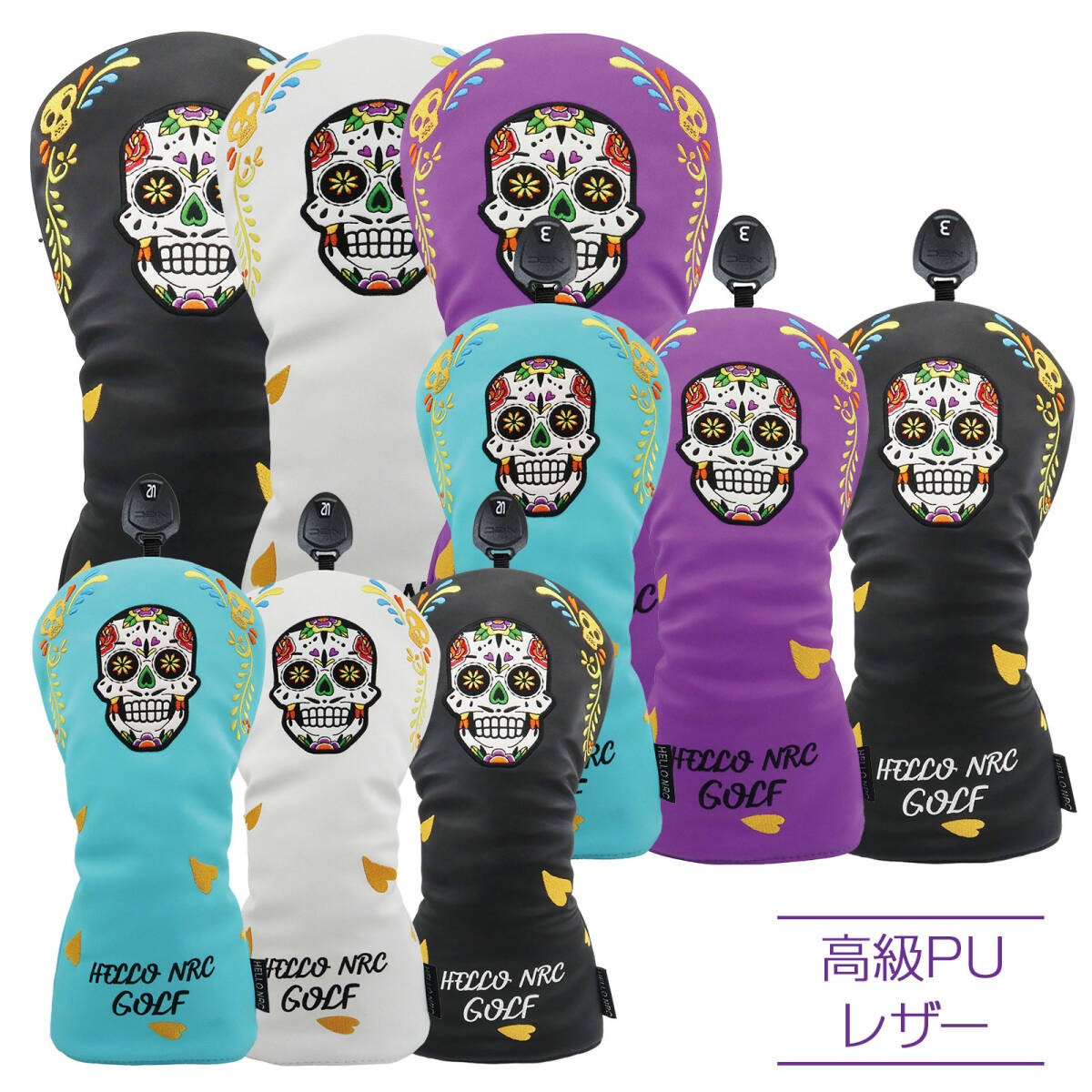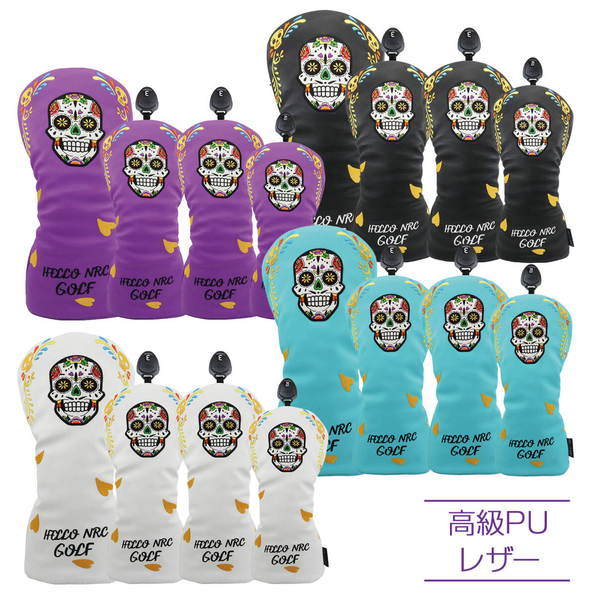 メキシコスカルデザインのゴルフヘッドカバーセットで、スタイルと機能性を兼ね備えたデザインをお楽しみください。