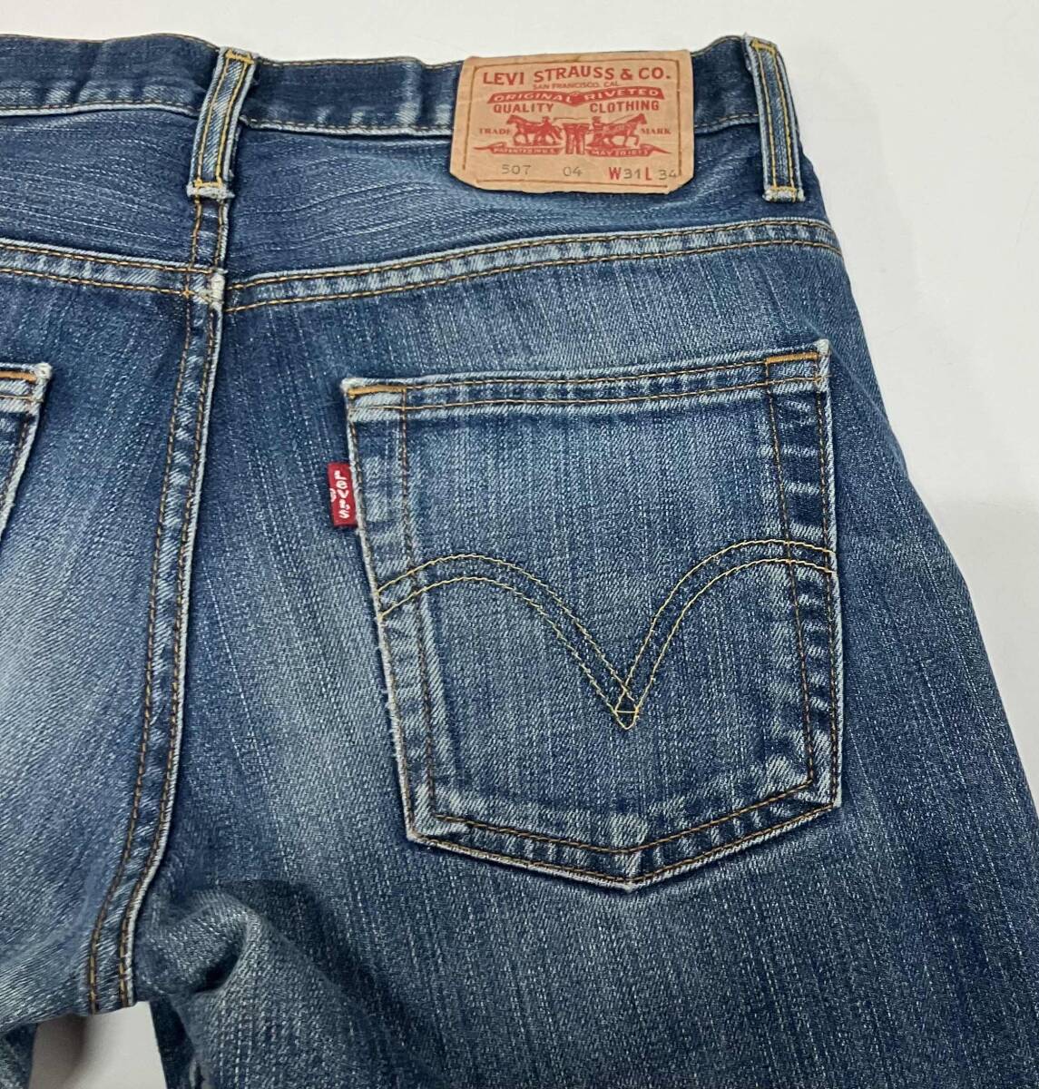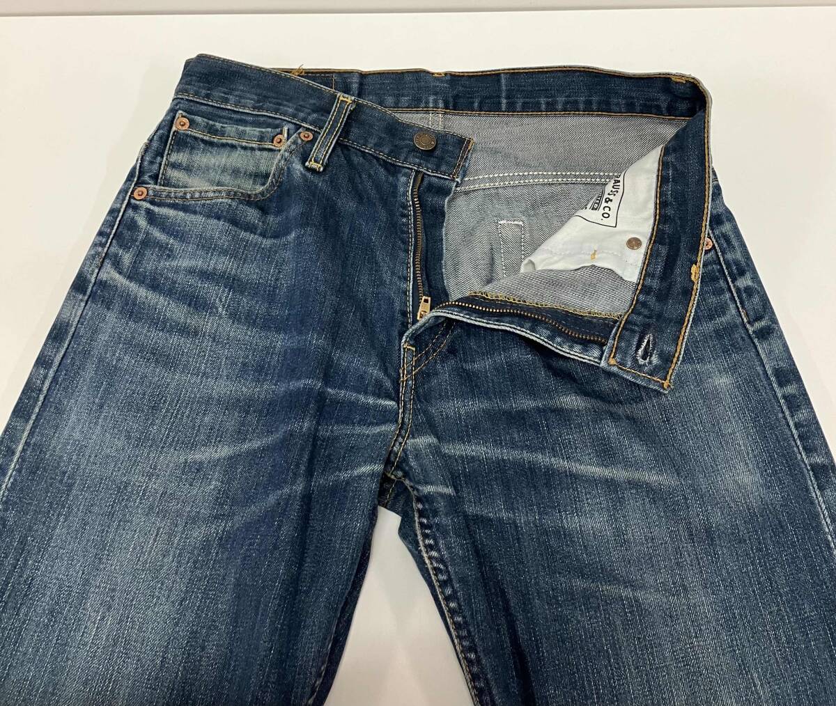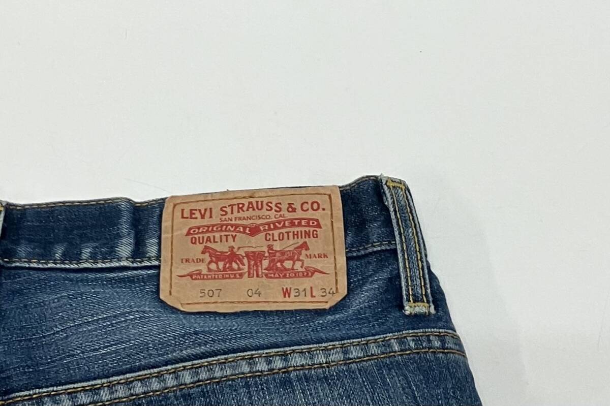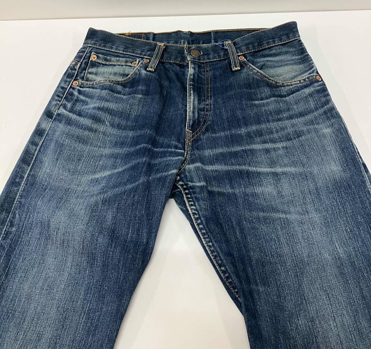 サイズ表記:W31L34 ウエスト(平置き):約80cm 股上:約28cm 股下:約83cm 裾幅:約46cm カラー:ブルー |