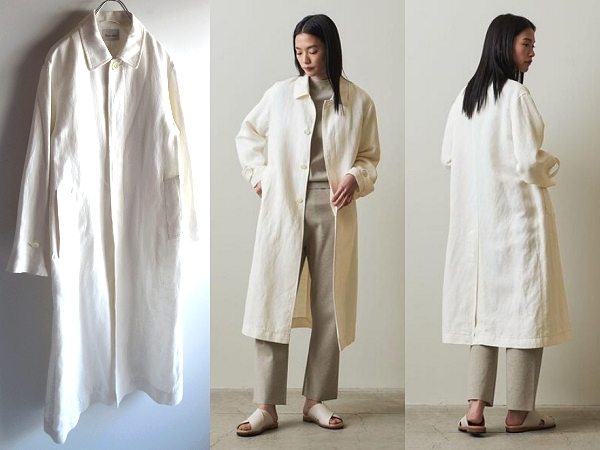 たて糸にリネンポリエステル、よこ糸にヘンプを使用した素朴な風合いのステンカラーコート。風合いが際立つミニマルなディテールと、ゆとりのあるボクシーなシルエットがトレンド感のある着こなしへ導きます。やや大きめの光沢のあるボタンがフェミニンさをプラス。着こむほどに柔らかく風合いの増す素材で、経年変化も楽しめる一着です。