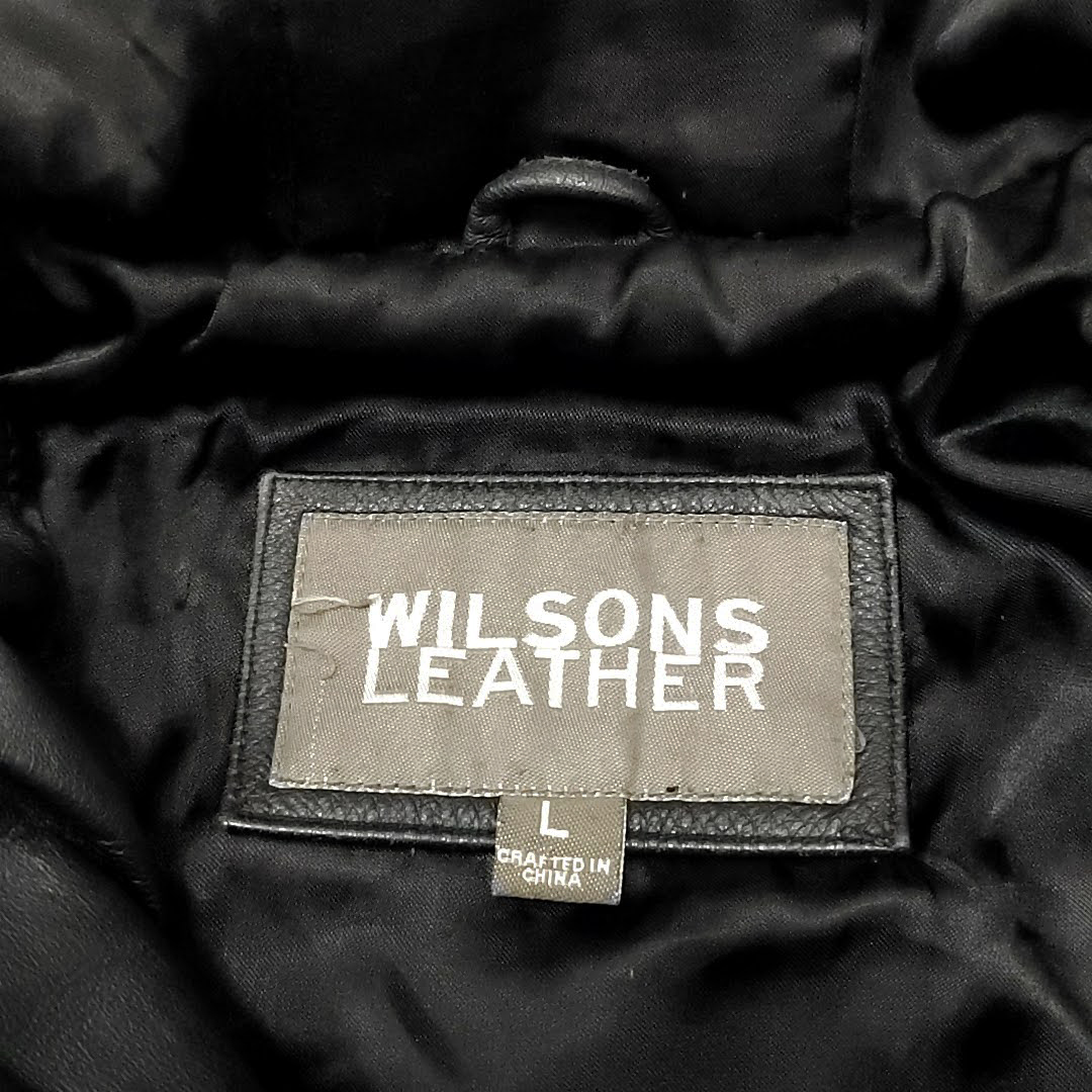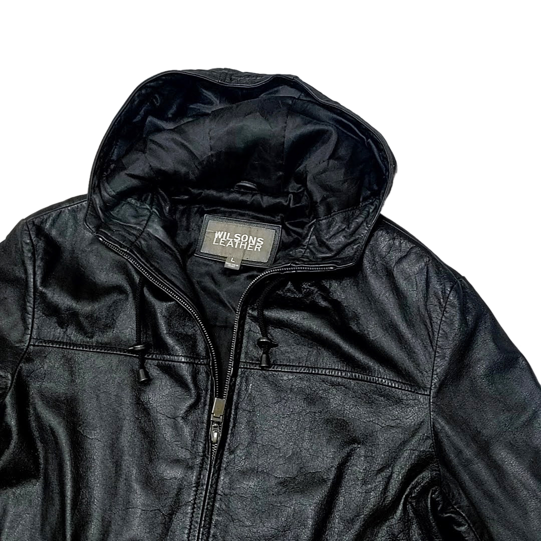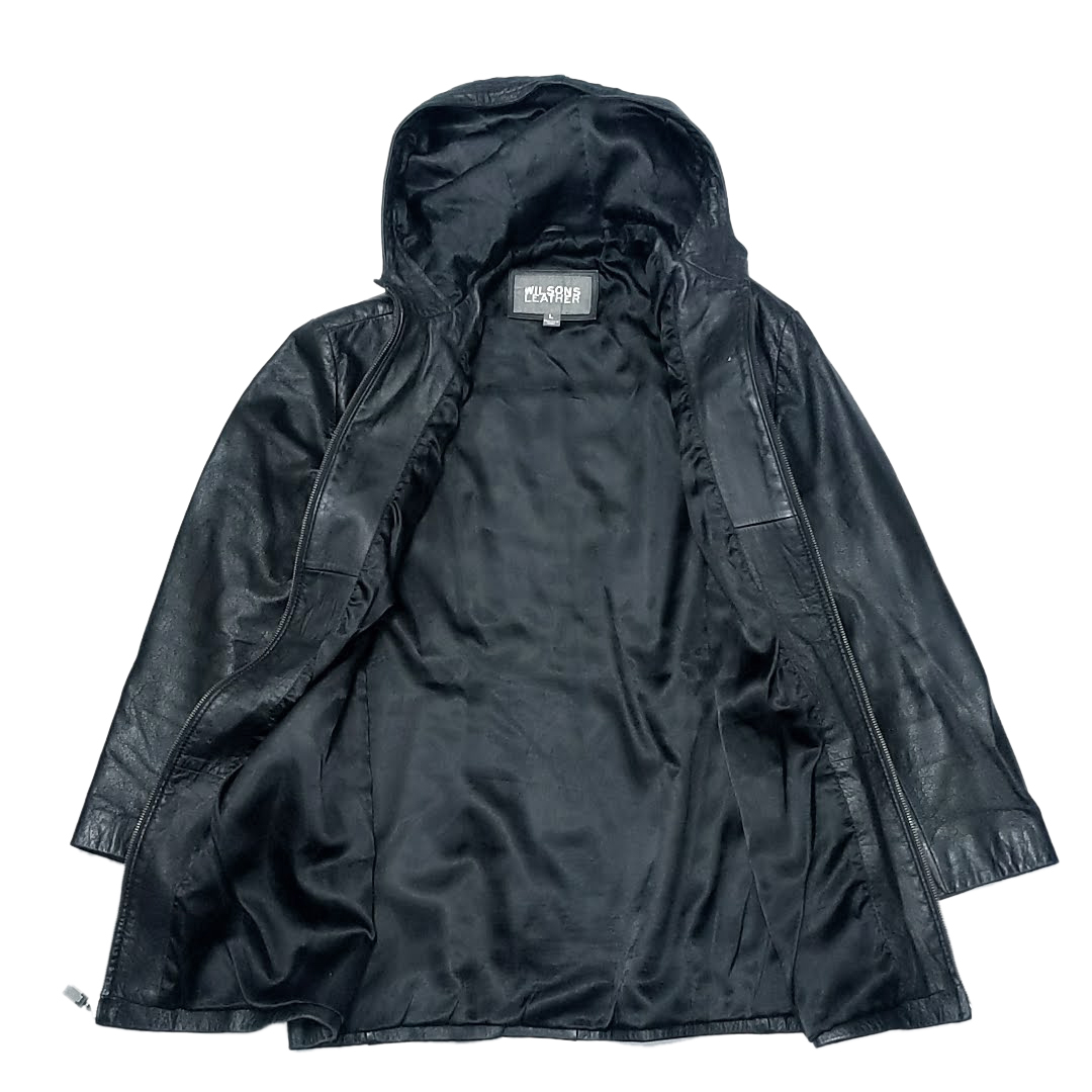 ・送料無料 ウィルソンズレザー WIL SONS LEATHER レザーコート ジャケット ブルゾン アウター ジップアップ フード フーディ パーカー L 黒 ブラック系 メンズ