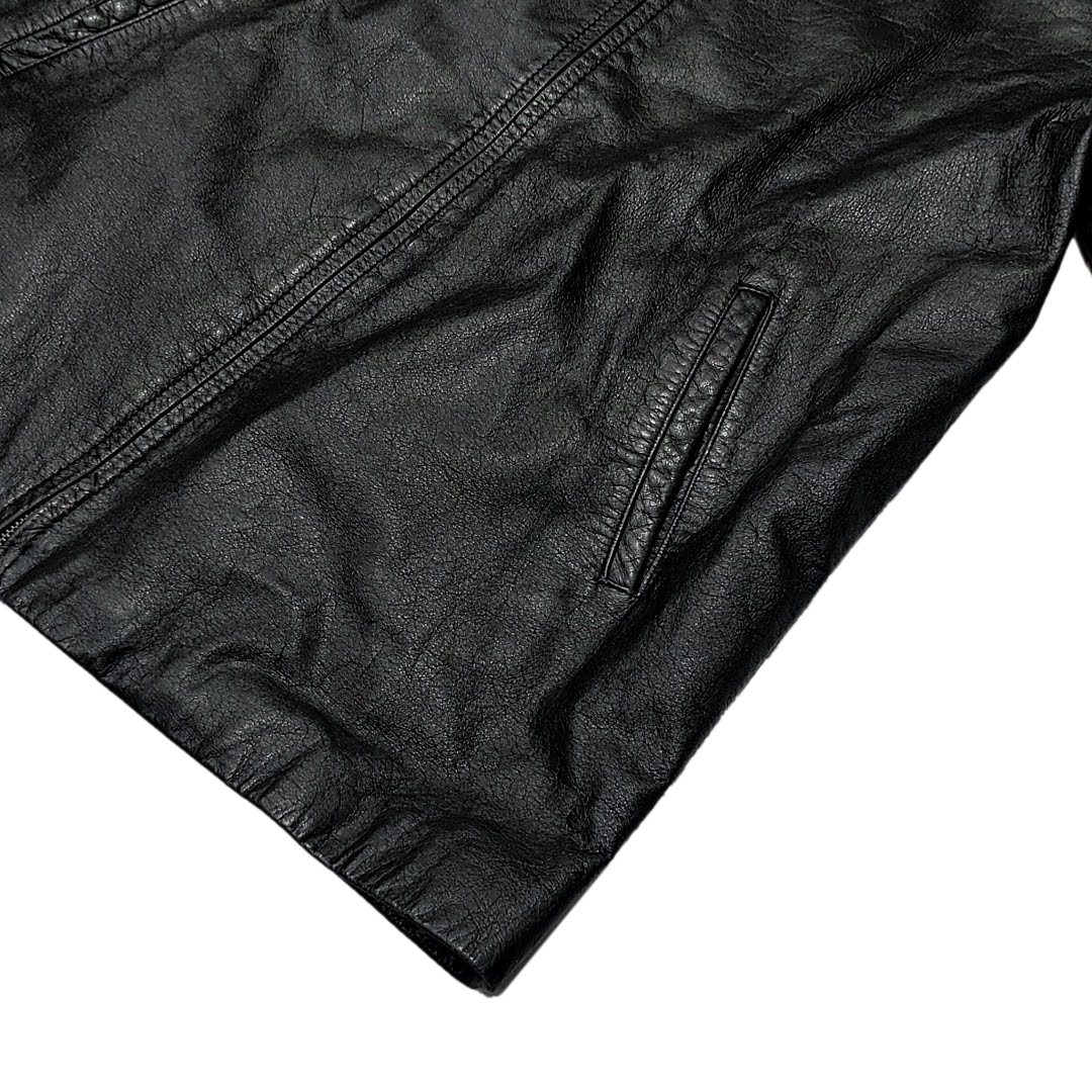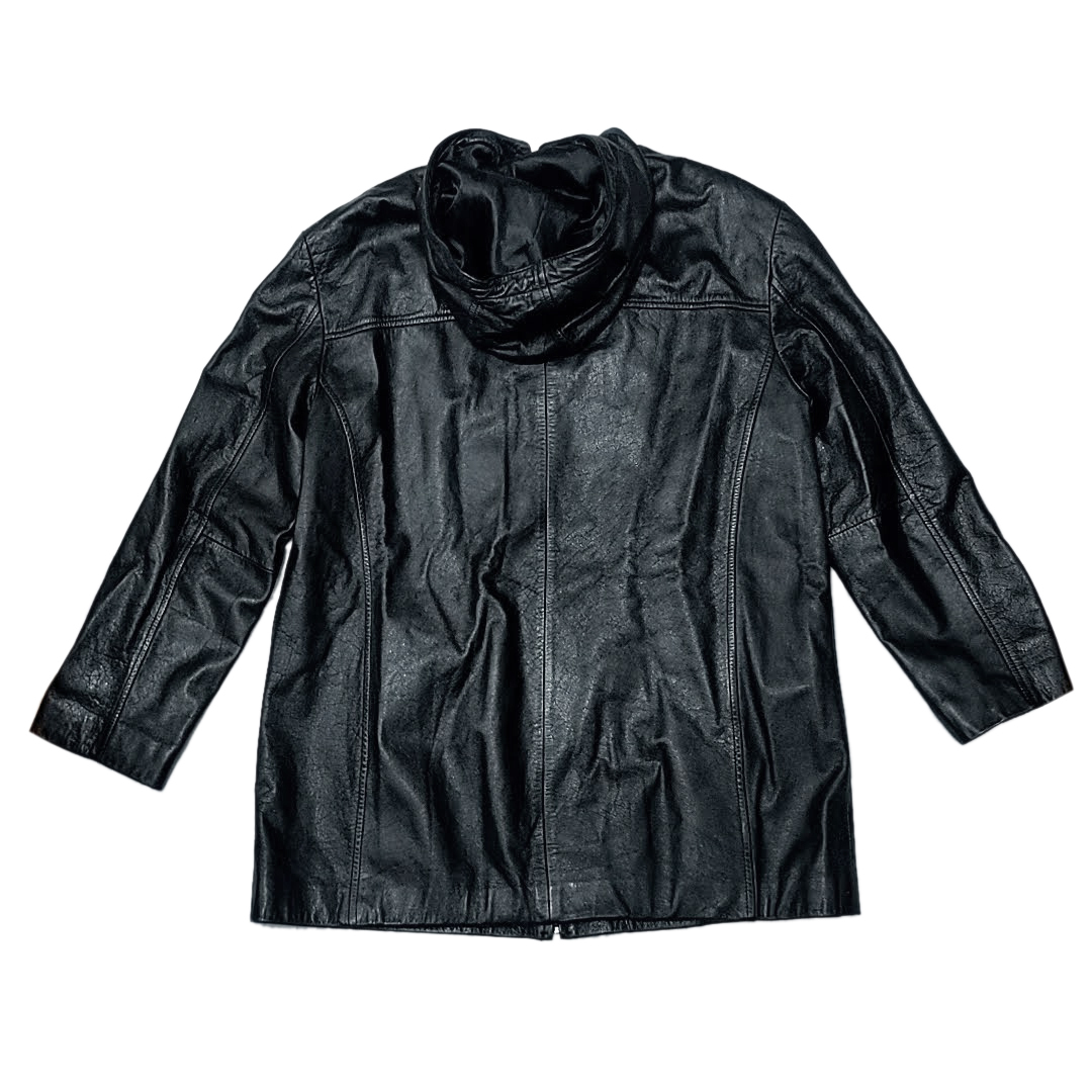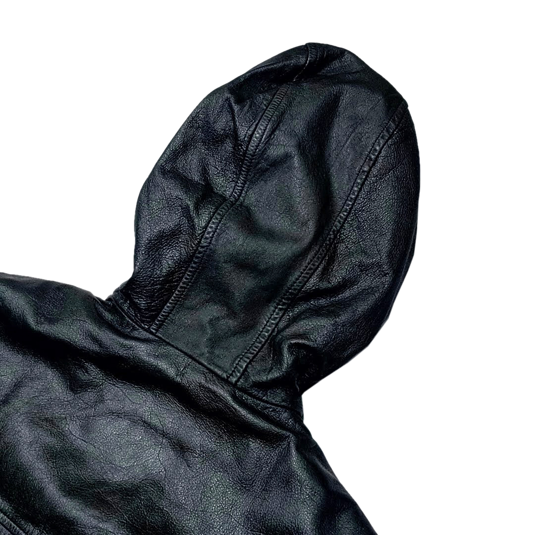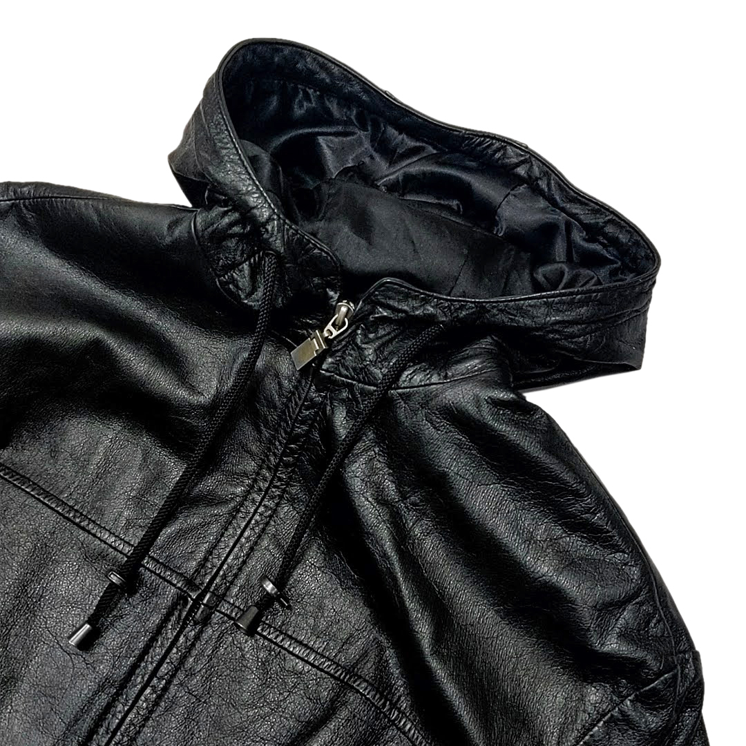 ・送料無料 ウィルソンズレザー WIL SONS LEATHER レザーコート ジャケット ブルゾン アウター ジップアップ フード フーディ パーカー L 黒 ブラック系 メンズ