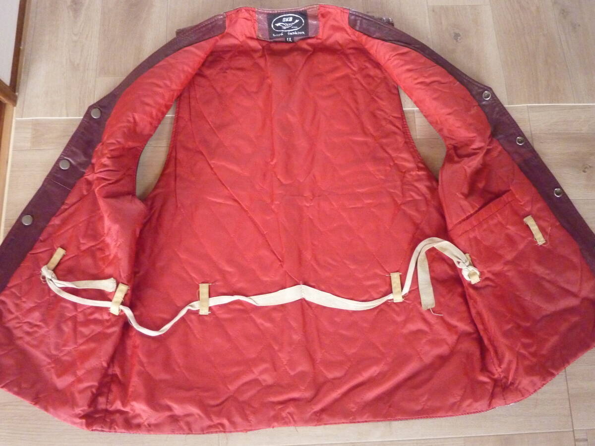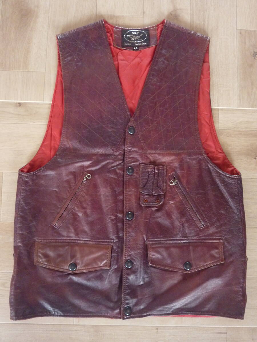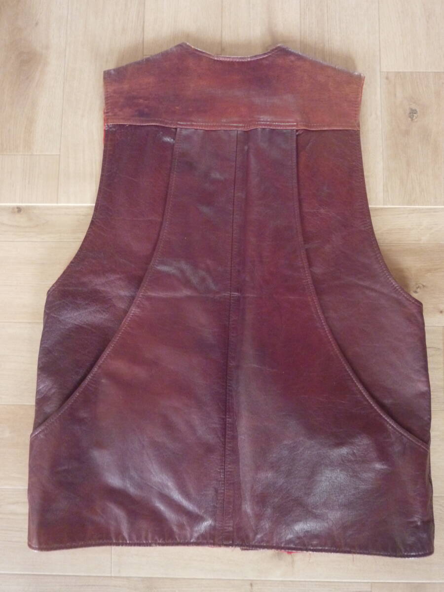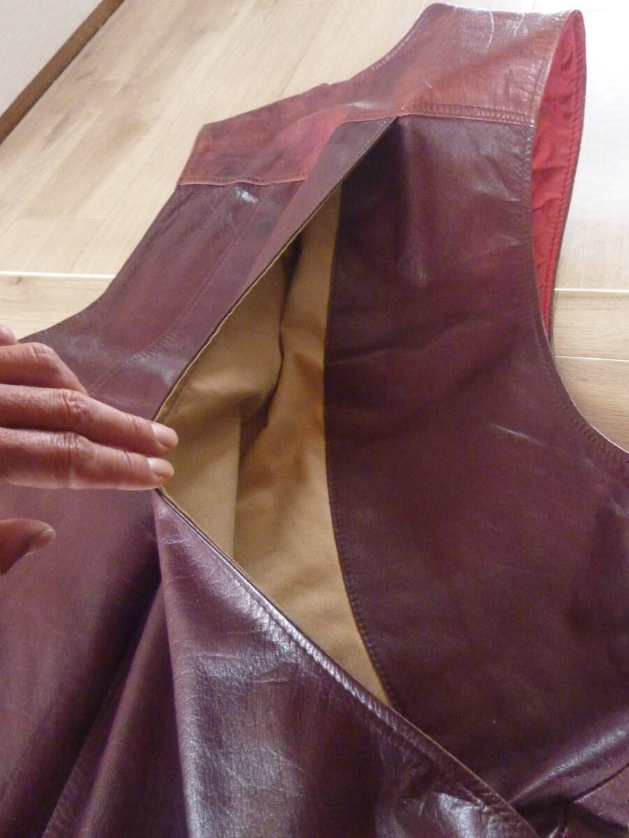 古着 ワインレッド キルティング加工 レザーベスト