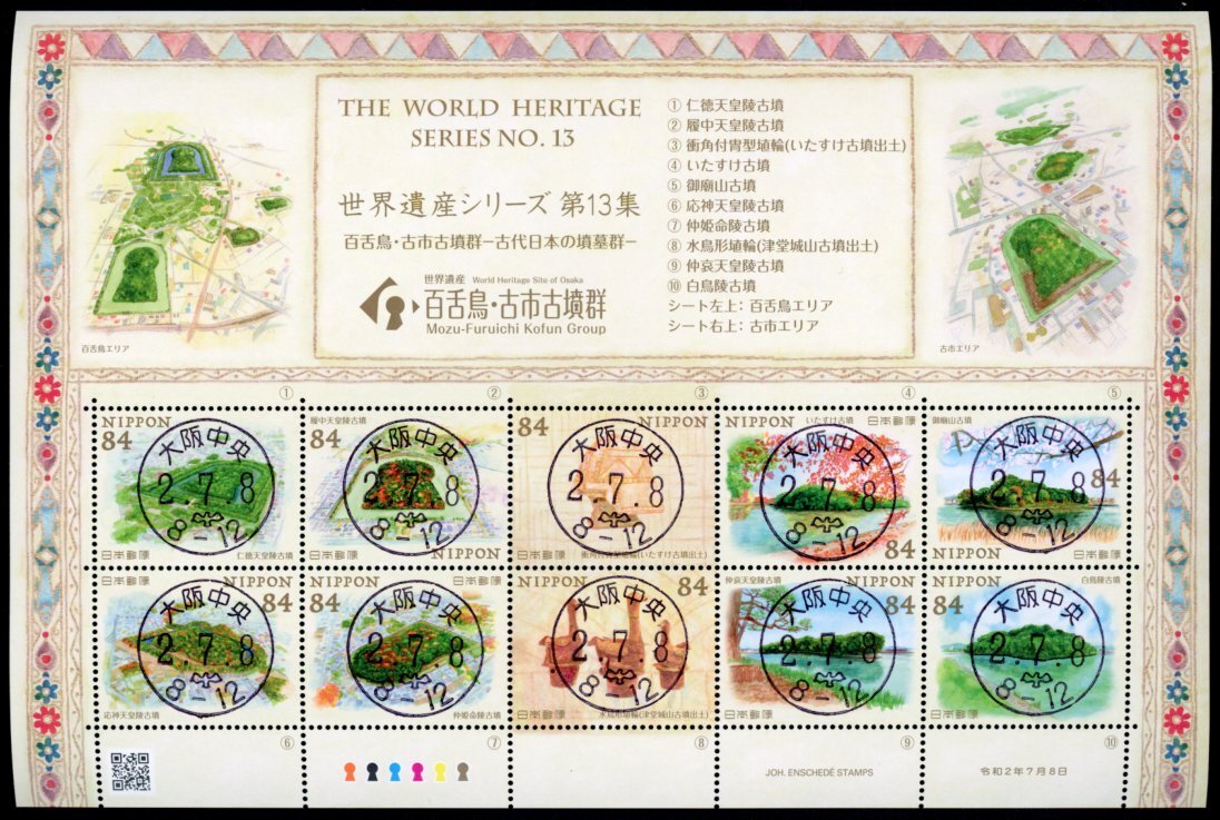 B132 【初日印】第3次世界遺産シリーズ第13集「百舌鳥・古市古墳群ー古代日本の墳墓群ー」[大阪中央/令2.7.8]
