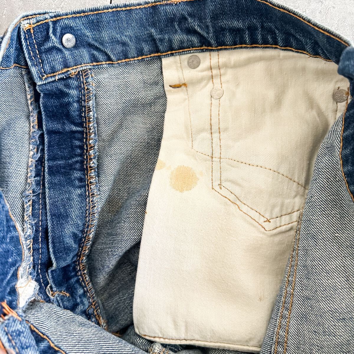 ※古着故の多少の着用感や画像のような色落ちがございます。左ポケットは縫われています。古着に理解のない方のご購入はお控えください。