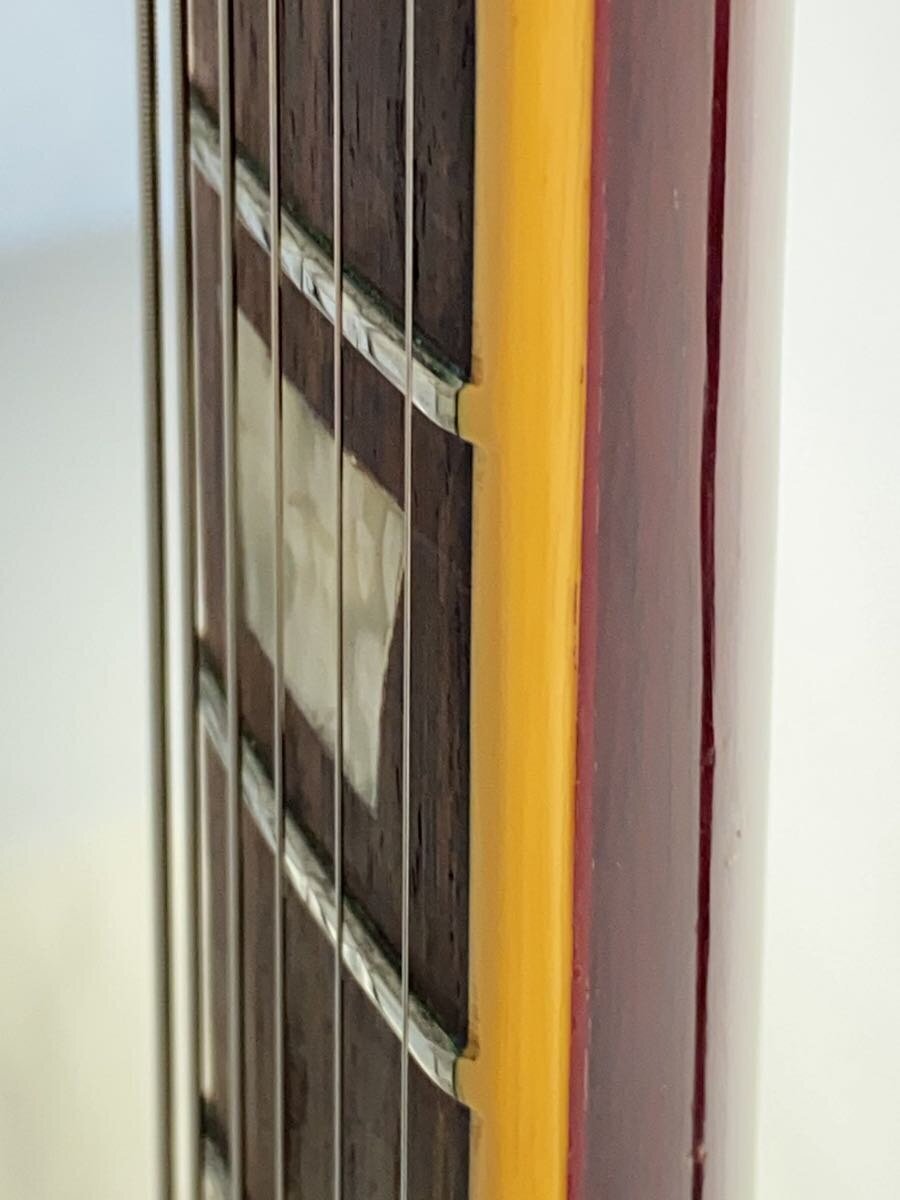 | ・塗装ダメージ有り ・ローポジションに偏ったフレット消耗有り 平均して6割の残りです 〇トラスロッドの効き:良好 〇純正ハードケース付 〇本体重量:約4.6kg |