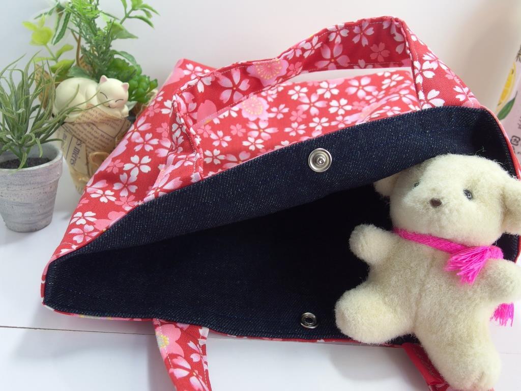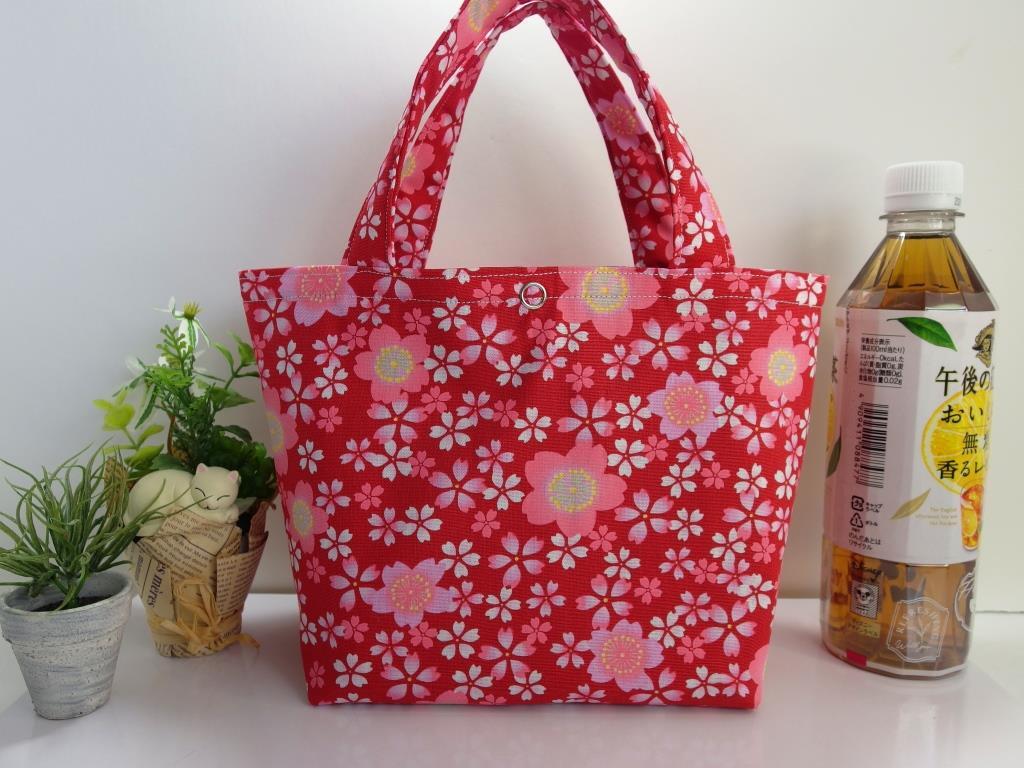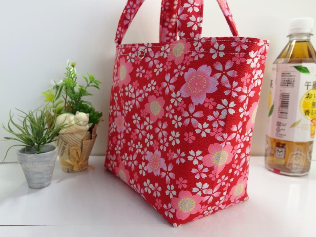 ハンドメイド 和柄のランチトートバッグ 赤①