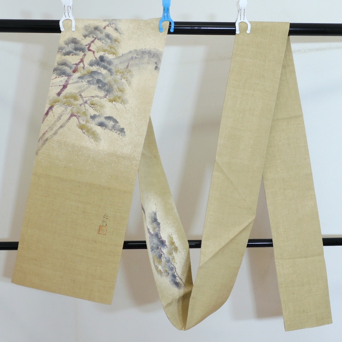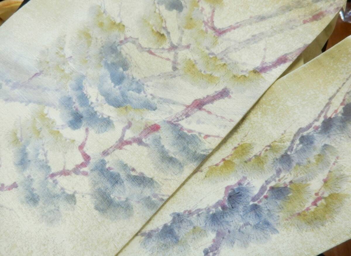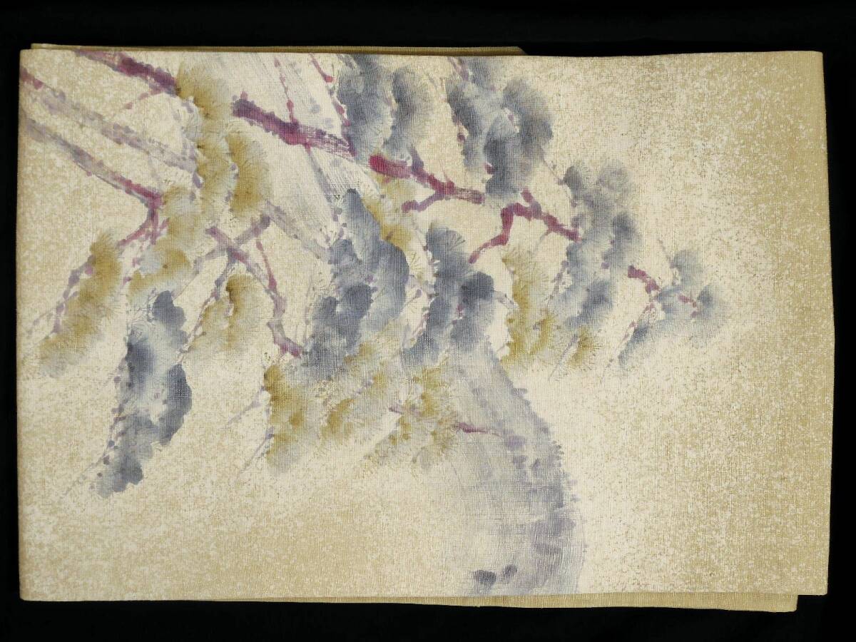<銀の斧>正絹・毎田仁郎(?)・雪中老松・紬地名古屋帯