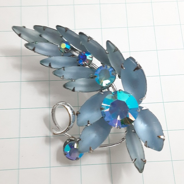 送料無料)ビンテージ☆ブルーラインストーン☆アンティーク ブローチ A28263