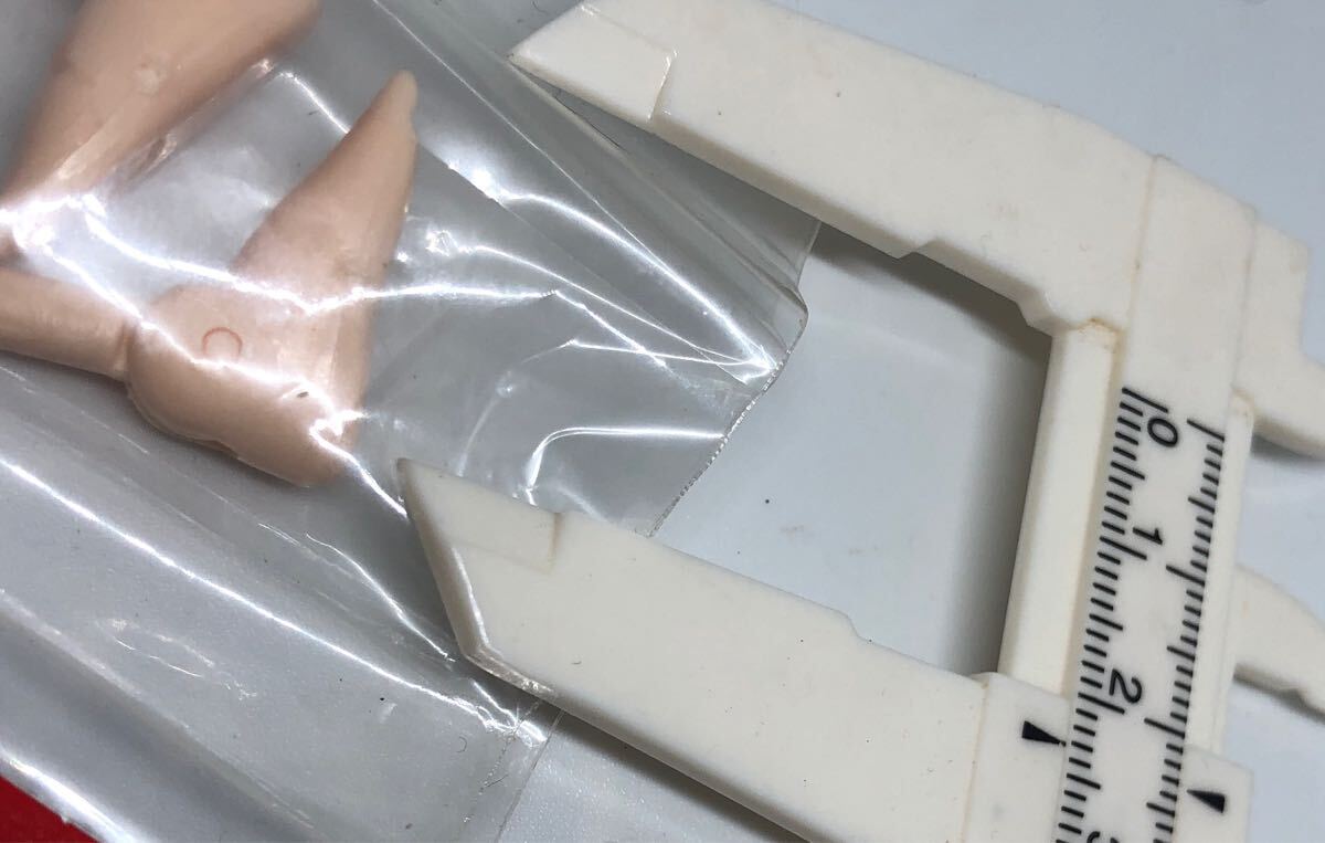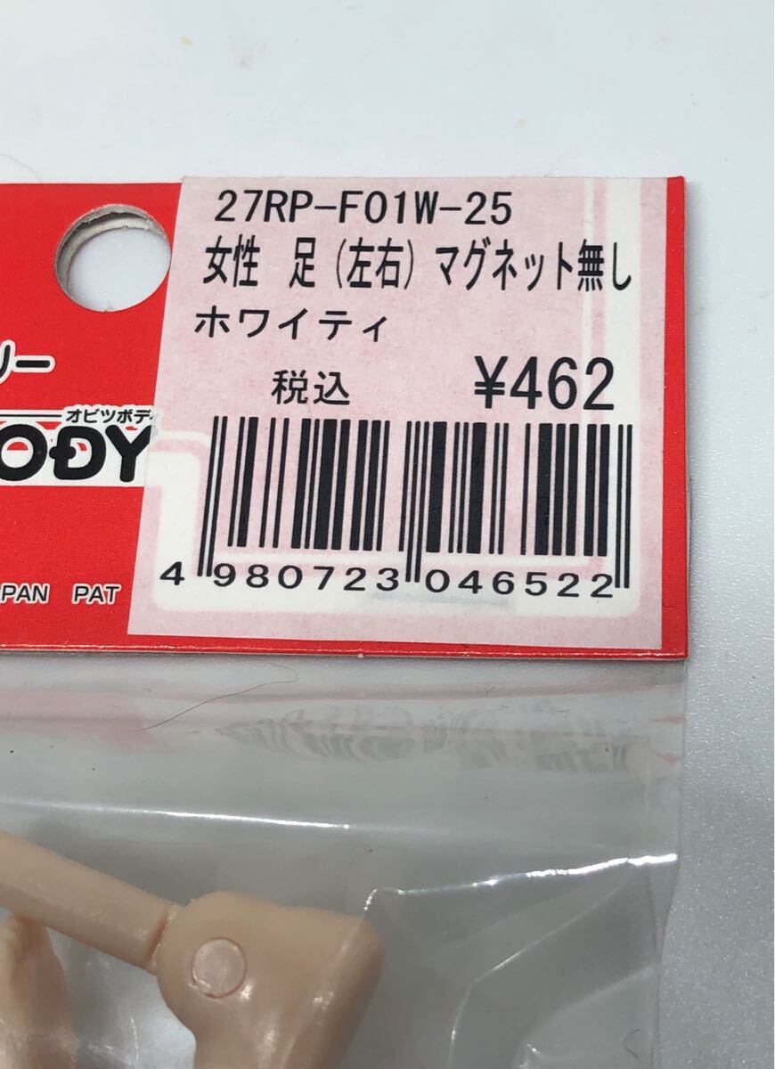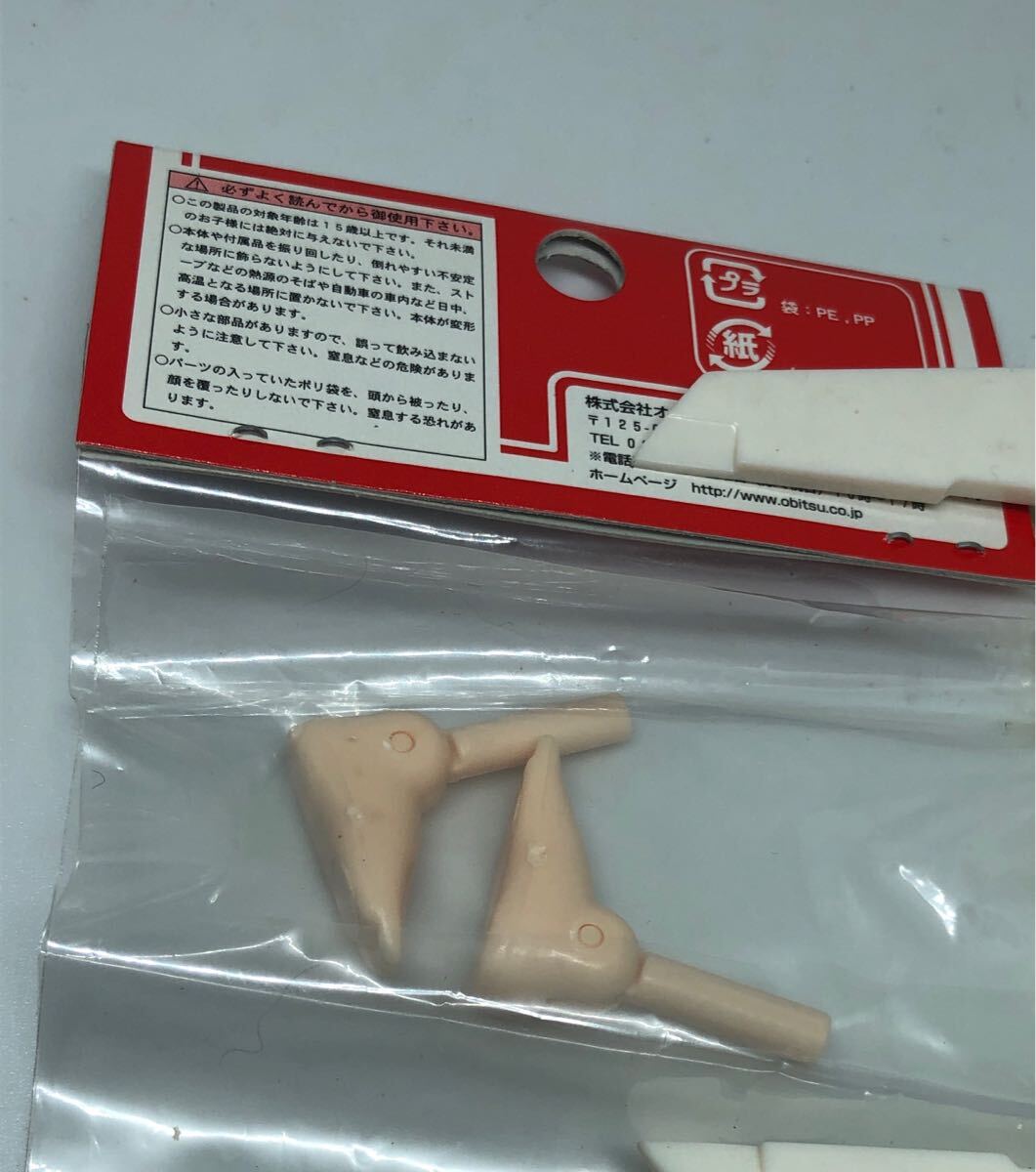 肌色の両足パーツ、約2.3cmのサイズでカスタムドールに最適。
