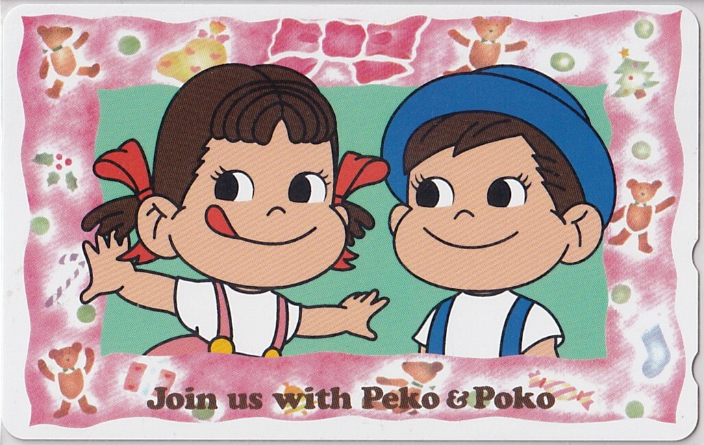 =不二家ペコ ポコちゃん= 「あっち向いてホイ?」販売テレカ #w