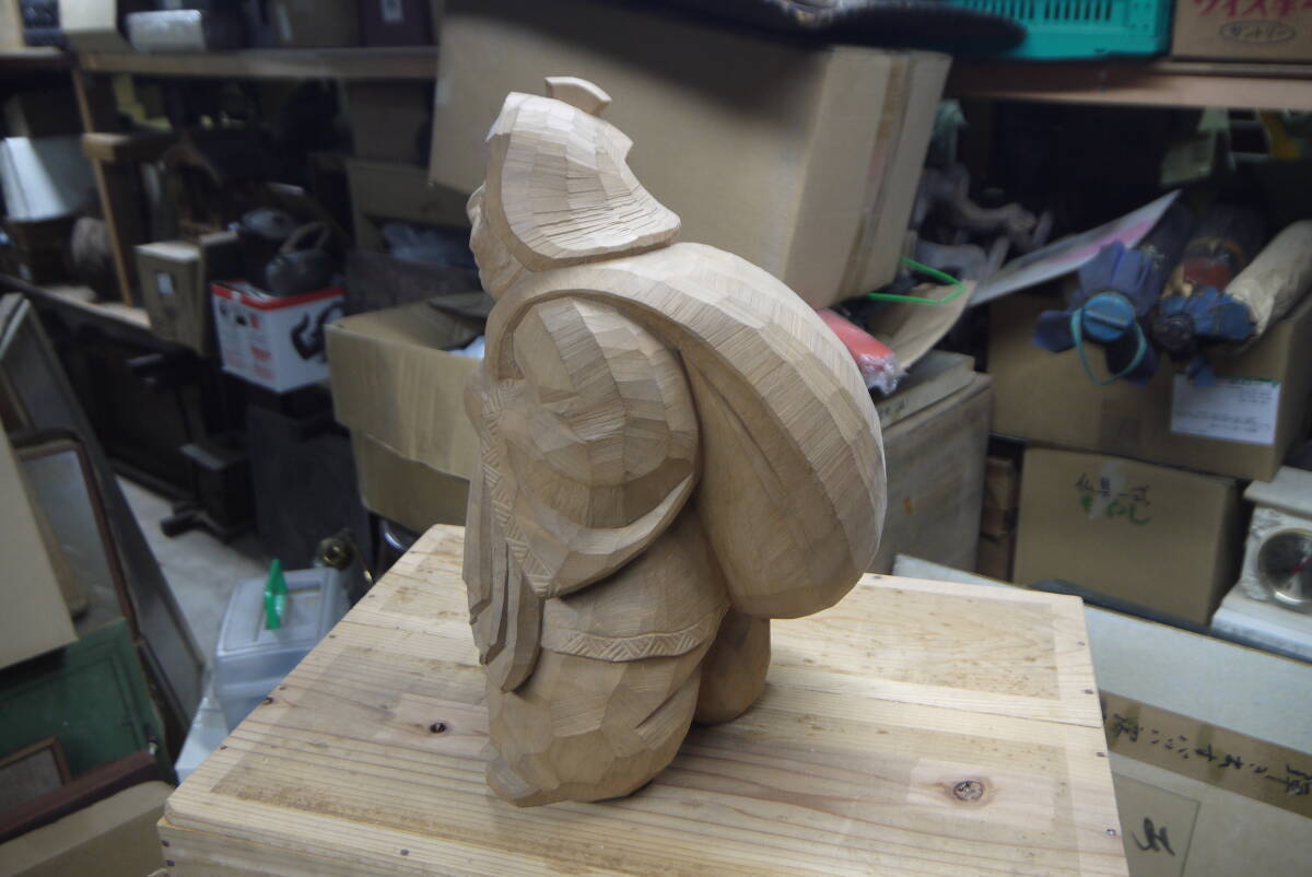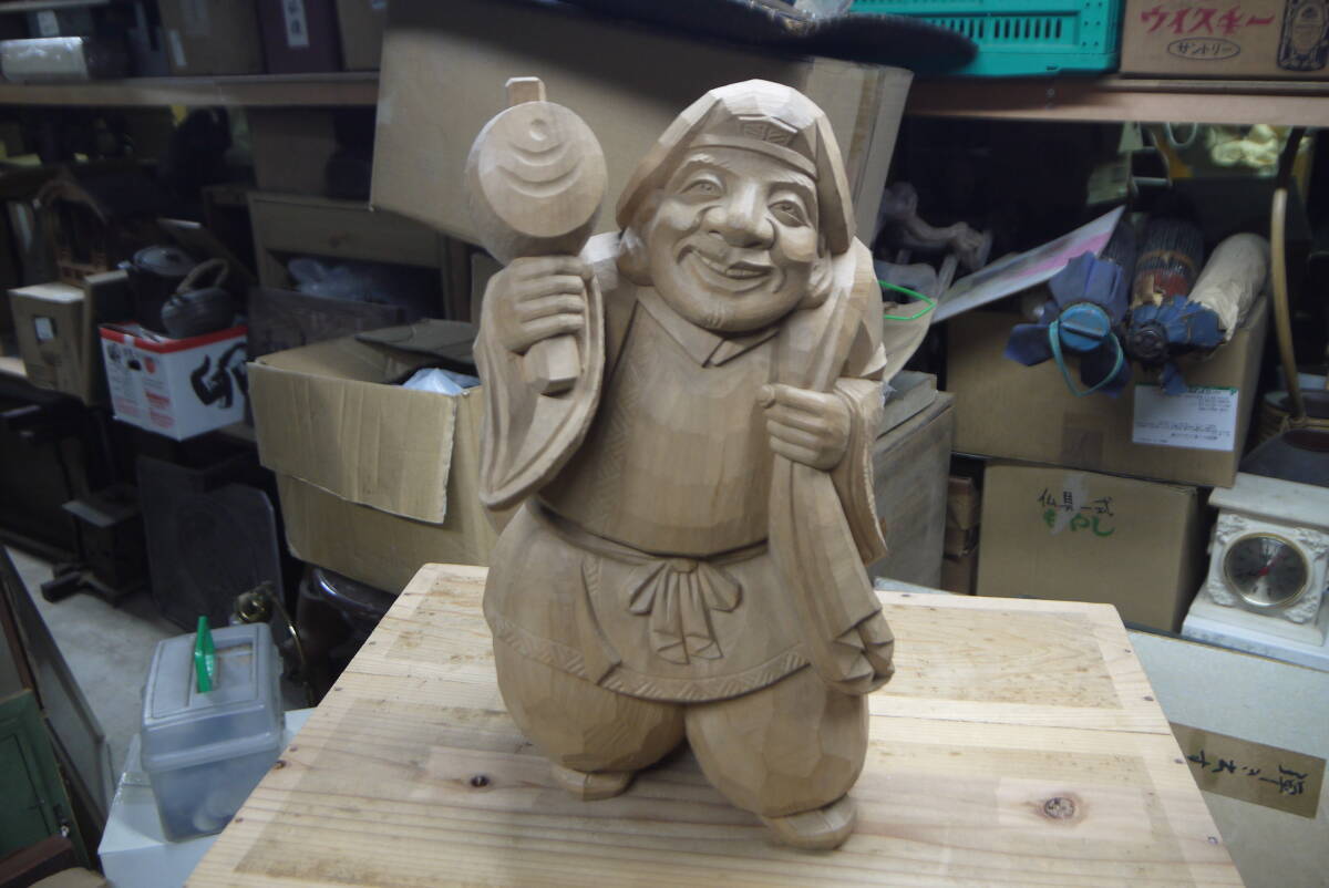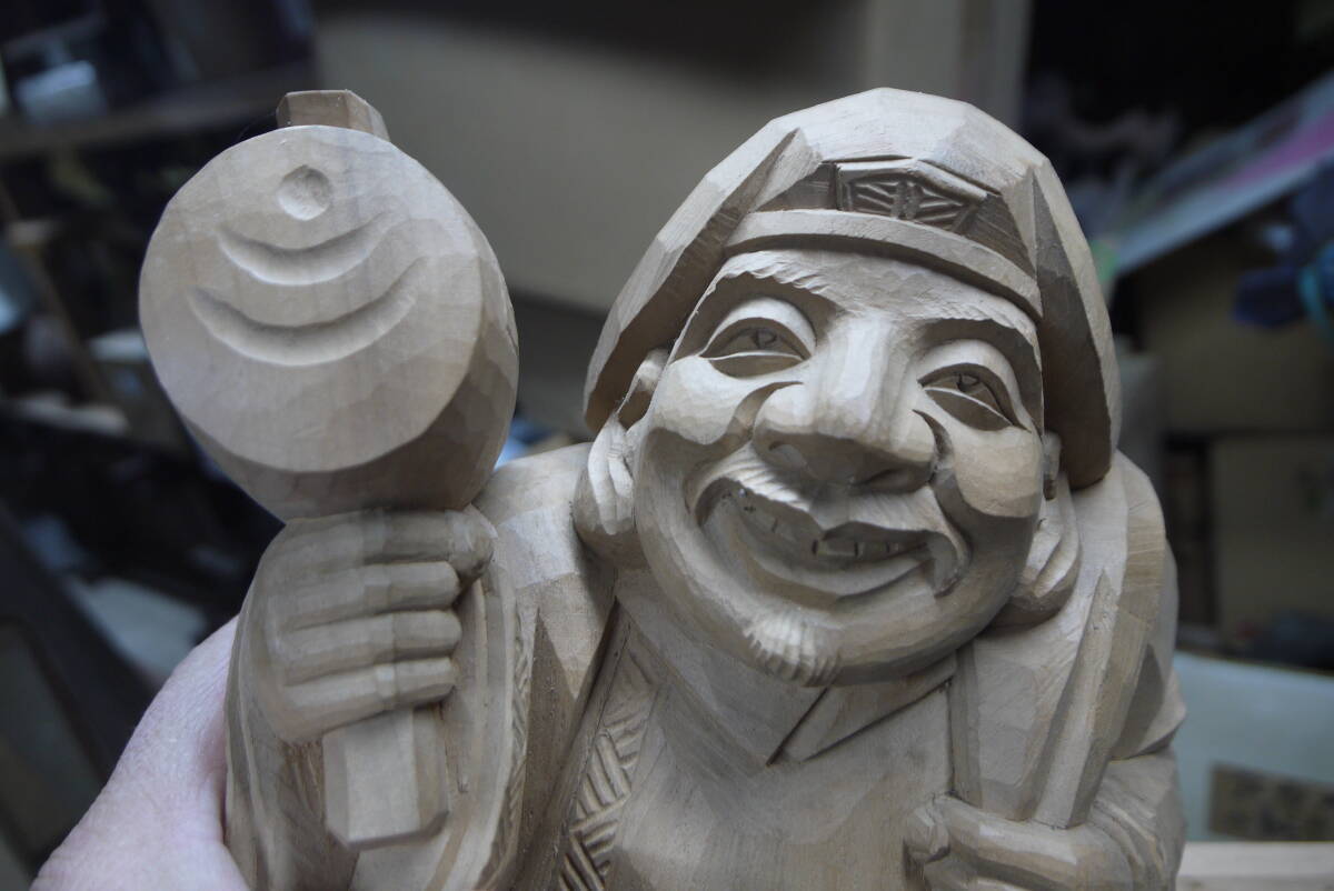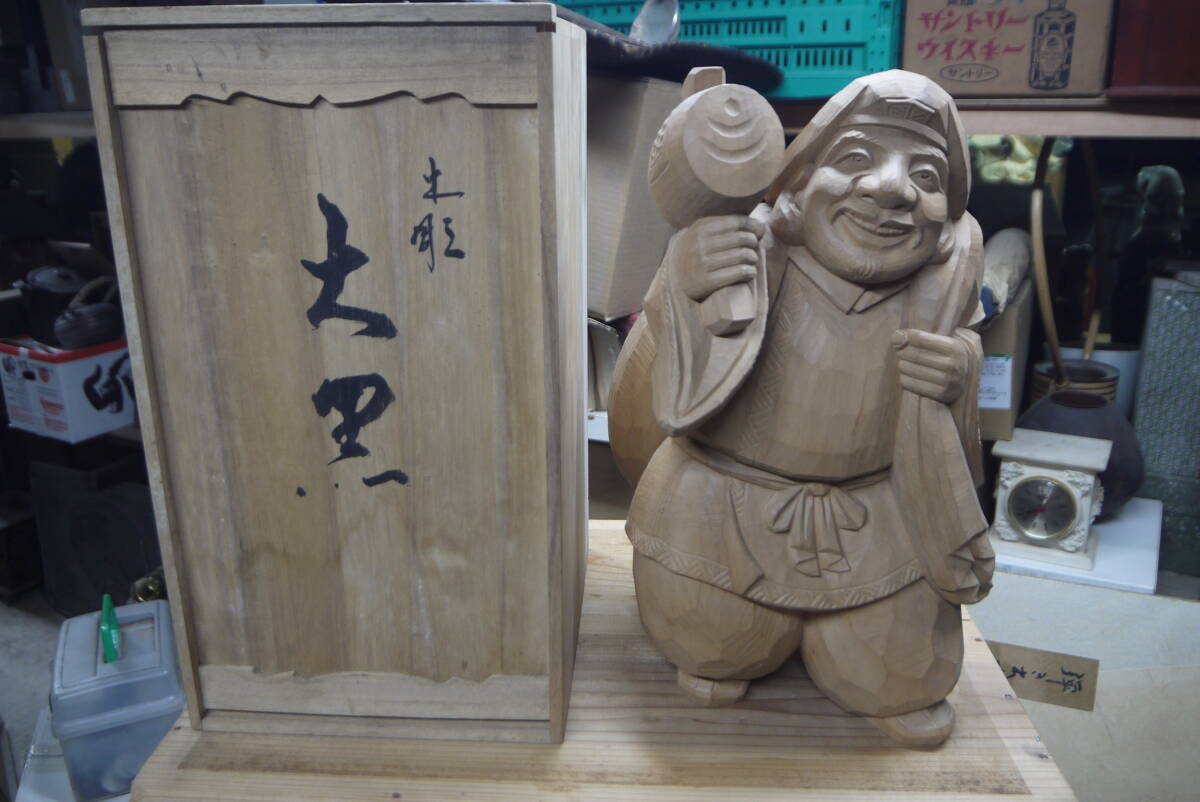 ★【H10704】讃岐一刀彫 木彫 近藤宏:作 「大黒」 木製彫刻 大黒様 37cm 桐箱付き