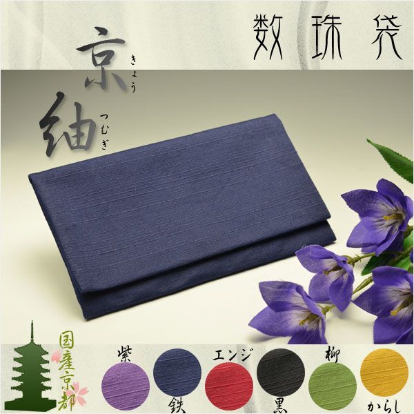 国産京都純正【数珠袋(大):京紬(きょうつむぎ)鉄】数珠・念珠・数珠入れ・数珠袋 ネコポス送料無料