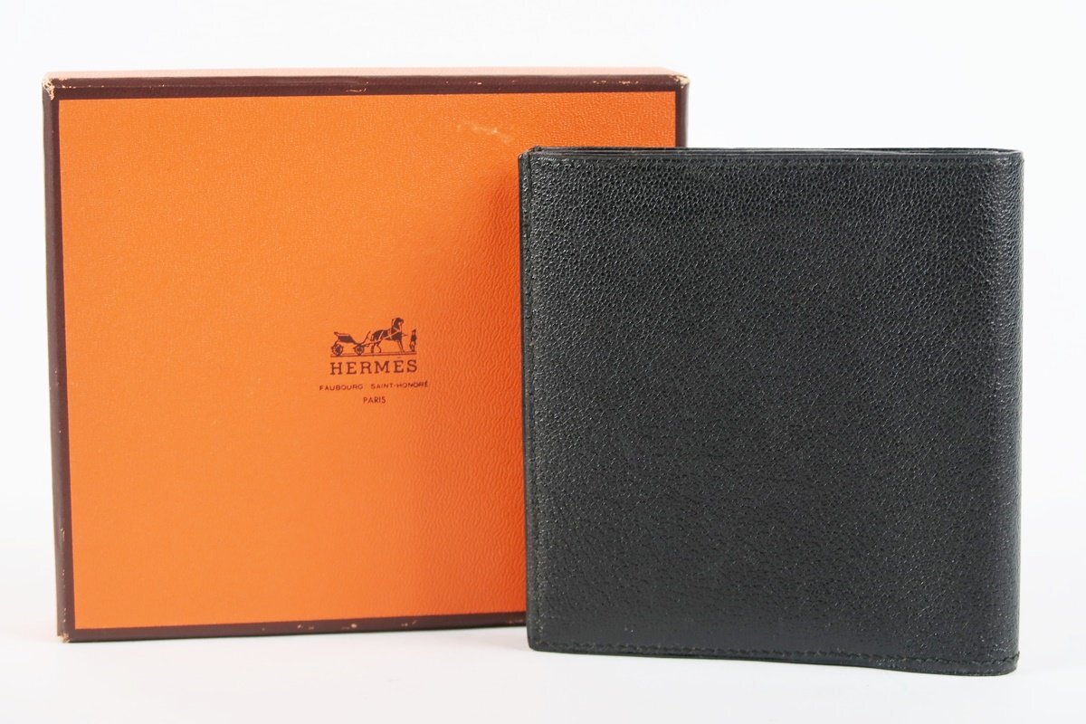 | 【超美品】HERMES エルメス 二つ折り財布 札入れ レザー ブラック ブランド小物【PP84】 |